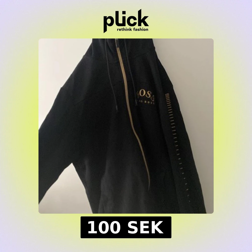 Svart hoodie från Hugo Boss med gulddetaljer och dragkedja. Tröjan har huva med snörning och logga på bröstet. Snygga detaljer längs ärmen och en clean look som passar perfekt till streetwear-stilen.
