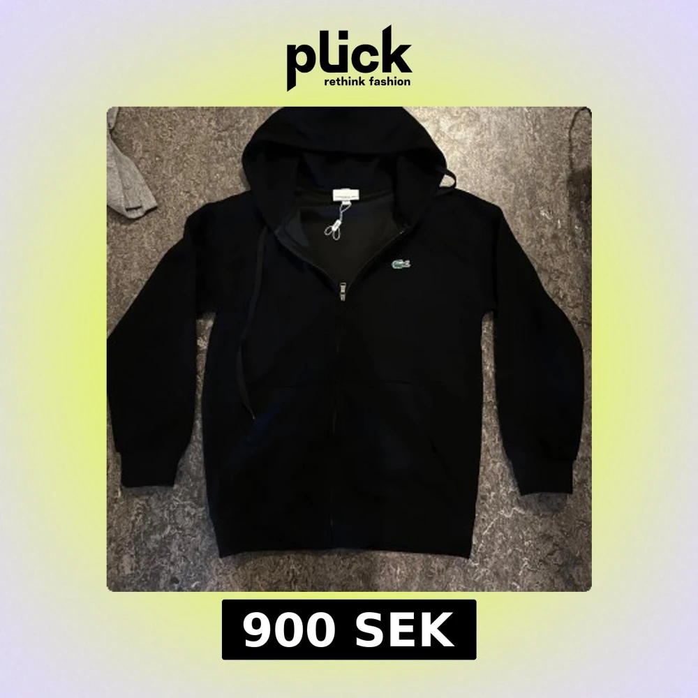 Svart hoodie från Lacoste med klassisk krokodillogga på bröstet. Tröjan har huva med snörning, hel dragkedja framtill och två fickor. Tillverkad i mjuk bomull och har långa ärmar. Perfekt för en chill och stilren look.