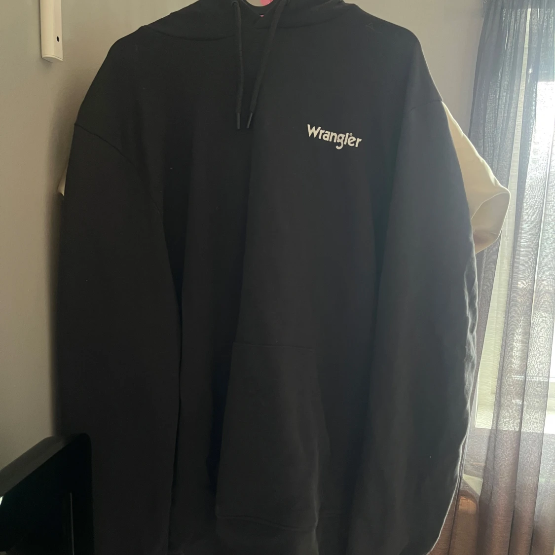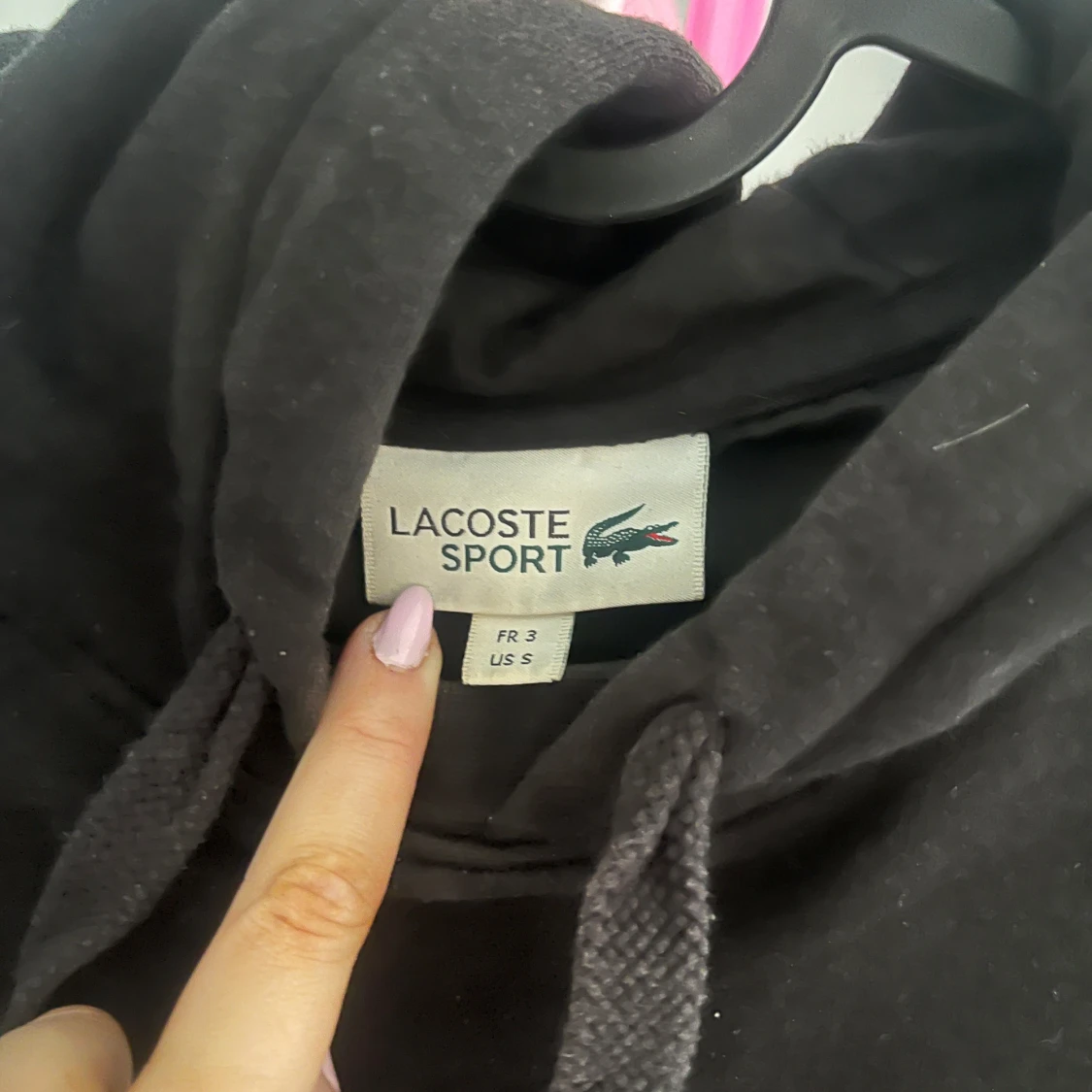 Säljer en svart hoodie från Lacoste Sport med klassisk krokodillogga på bröstet i storlek S. Tröjan har huva med dragsko och långa ärmar. Perfekt för en sportig och avslappnad stil. Den andra hoodien är från Wrangler i storlek M. Köp båda för 500kr och en för 300kr.🌷