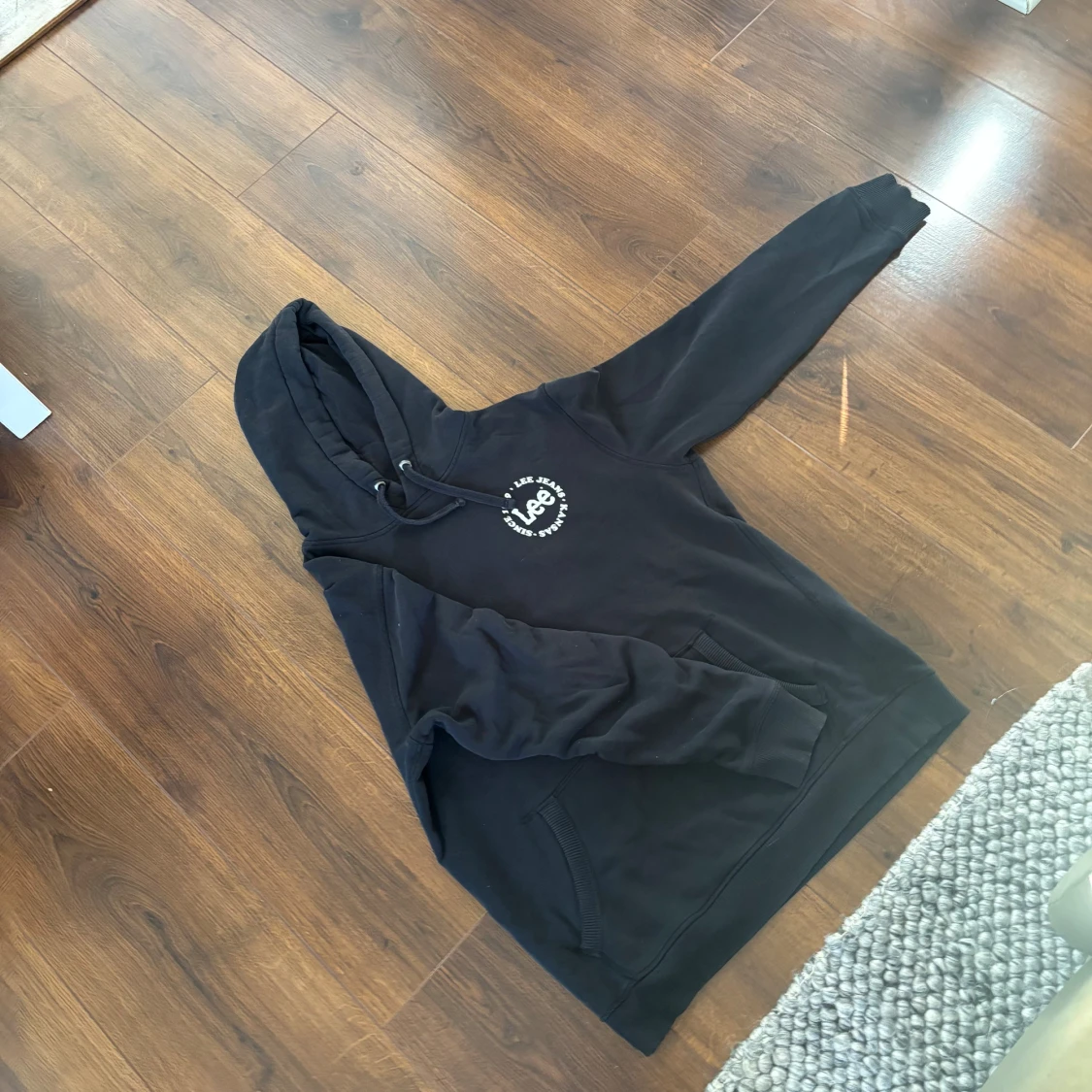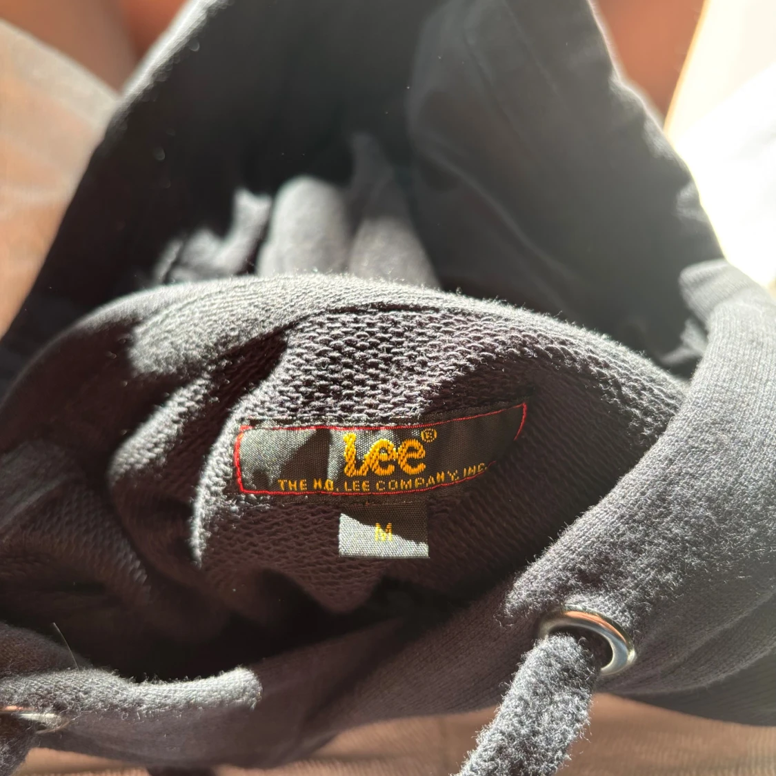 Svart hoodie från Lee med vit logga på bröstet. Klassisk modell med huva och dragsko, samt stor känguruficka framtill. Mjuk insida och ribbade muddar vid ärmslut och nederkant. Perfekt för chill dagar eller när du vill ha en enkel streetstyle.
