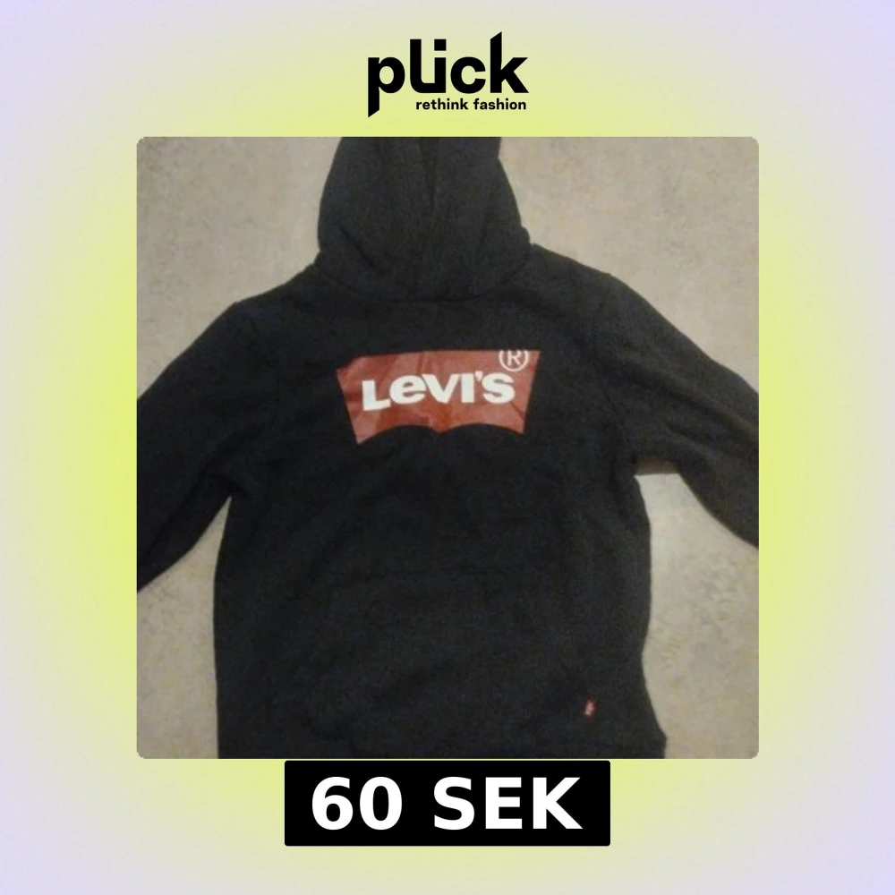 Säljer en svart hoodie från Levi's med det klassiska röda logotyptrycket på framsidan. Tröjan har en bekväm huva och långa ärmar, perfekt för en avslappnad stil.