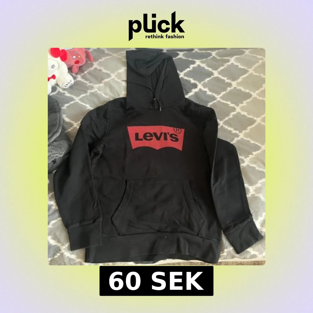 Svart hoodie från Levi's med stor röd logga på bröstet. Klassisk känguruficka framtill, huva med snörning och ribbade muddar. Perfekt för en chill och avslappnad stil. Mjuk och skön bomullsblandning.