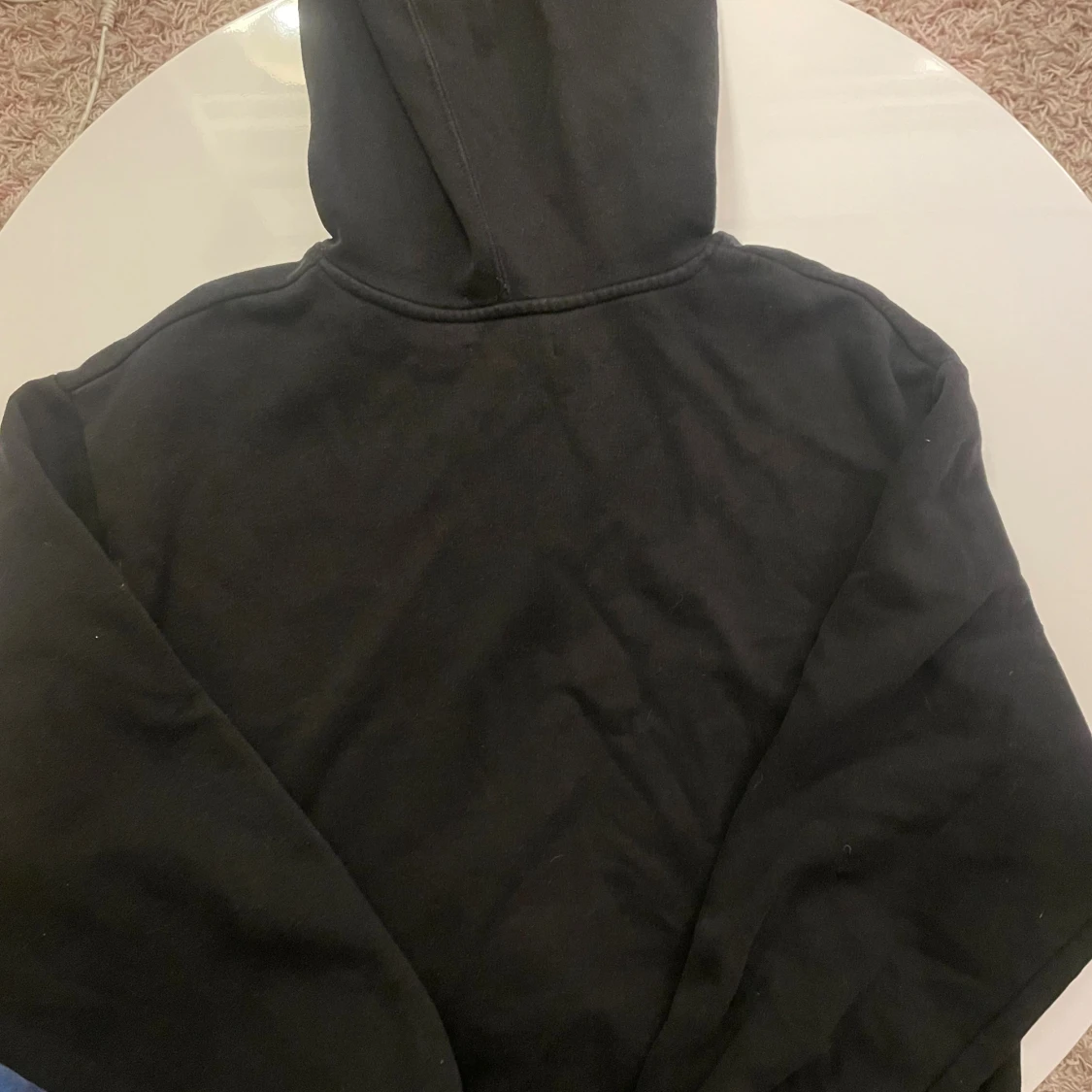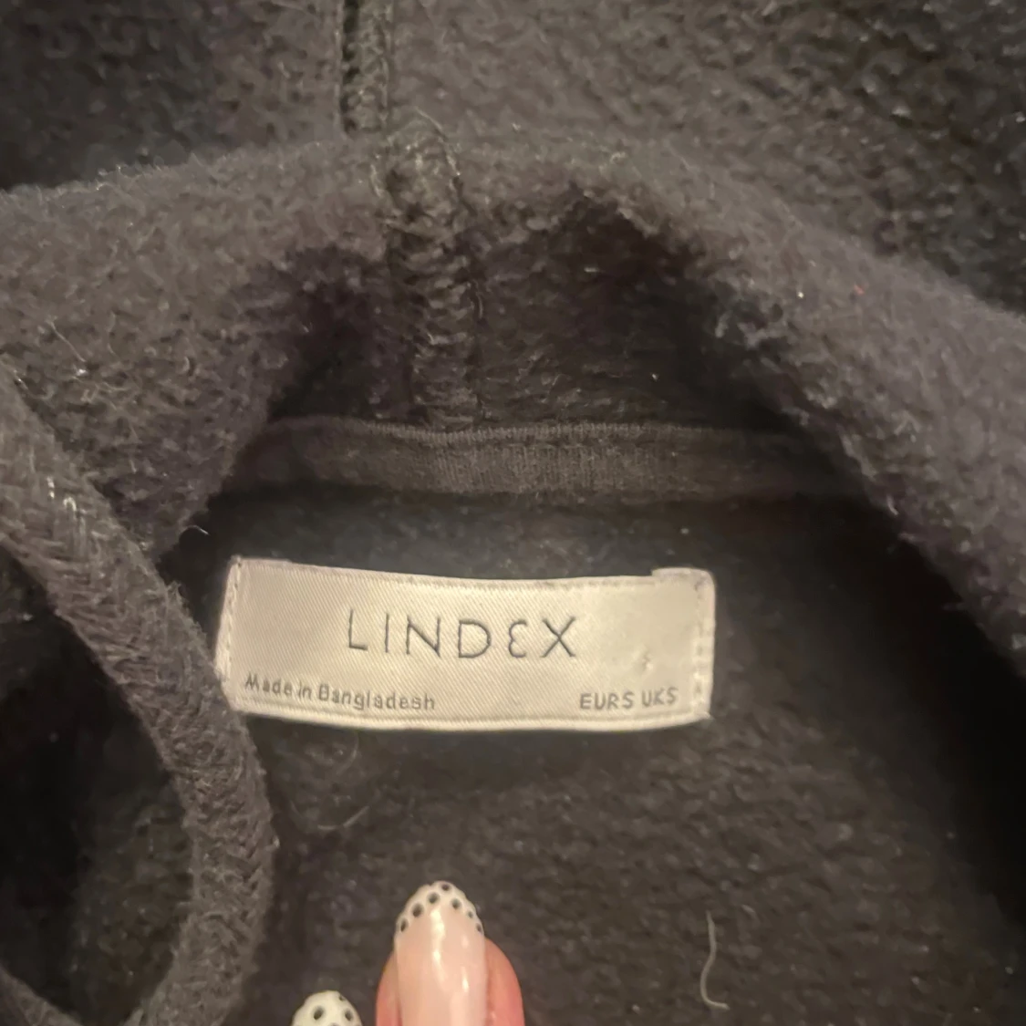 En klassisk svart hoodie från Lindex med huva och snörning. Tröjan har en stor känguruficka framtill och ribbade muddar vid ärmslut och nederkant. Perfekt för chill dagar eller när du vill ha en enkel och stilren look.
