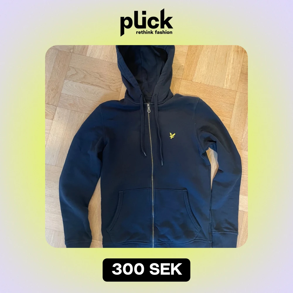 Säljer en svart hoodie från Lyle & Scott i mycket bra skick. Den har en dragkedja framtill och en gul logga på bröstet. Perfekt för höst och vår, med en skön huva och fina fickor. Säljer den pga den är för liten för mig. Svarar gärna på frågor! 😊