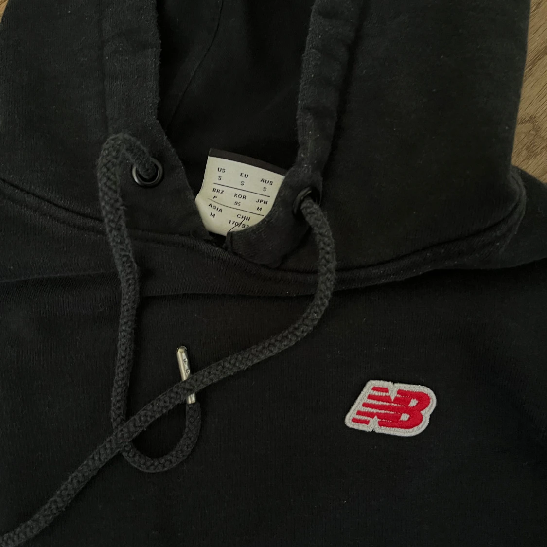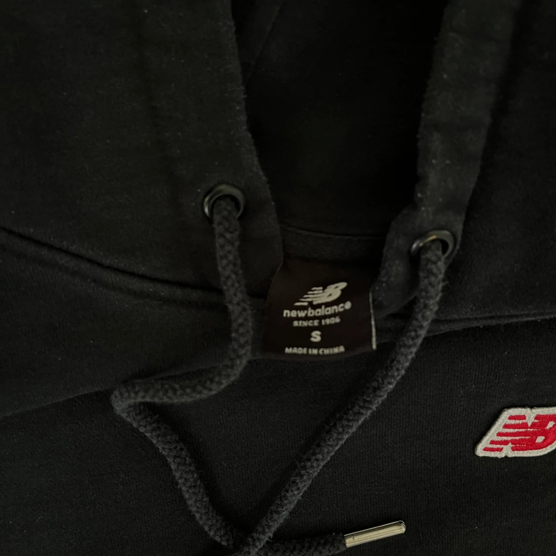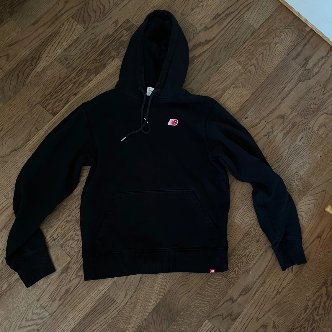 Svart hoodie från New Balance med klassisk röd NB-logga broderad på bröstet. Tröjan har huva med snörning, känguruficka och är tillverkad i mjuk bomull. Perfekt för en chill och sportig look.
