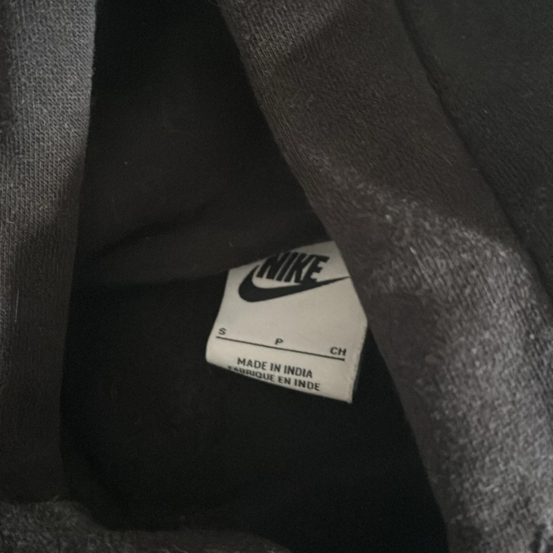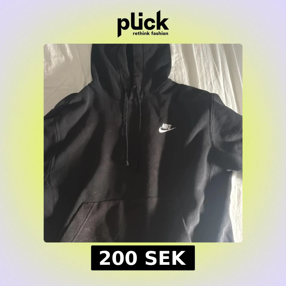 Säljer en klassisk svart hoodie från Nike med vit logga på bröstet. Den har en justerbar huva och en stor ficka framtill. Storlek S men är stor i storleken så passar även M kanske L.