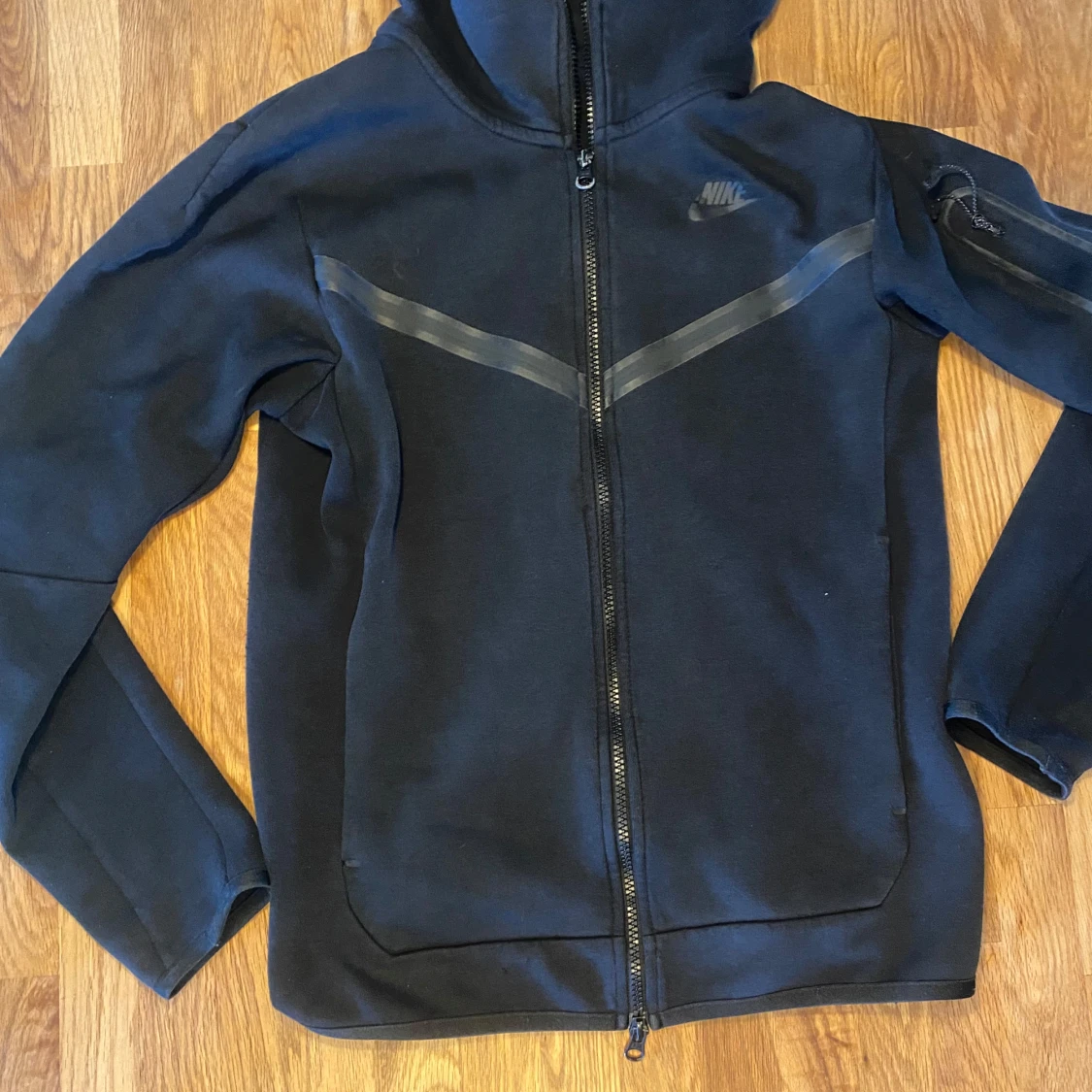 Säljer en svart hoodie från Nike med dragkedja och huva. Den har en diskret logga på bröstet och är tillverkad i ett mjukt material. Perfekt för en avslappnad stil. Pris kan diskuteras.