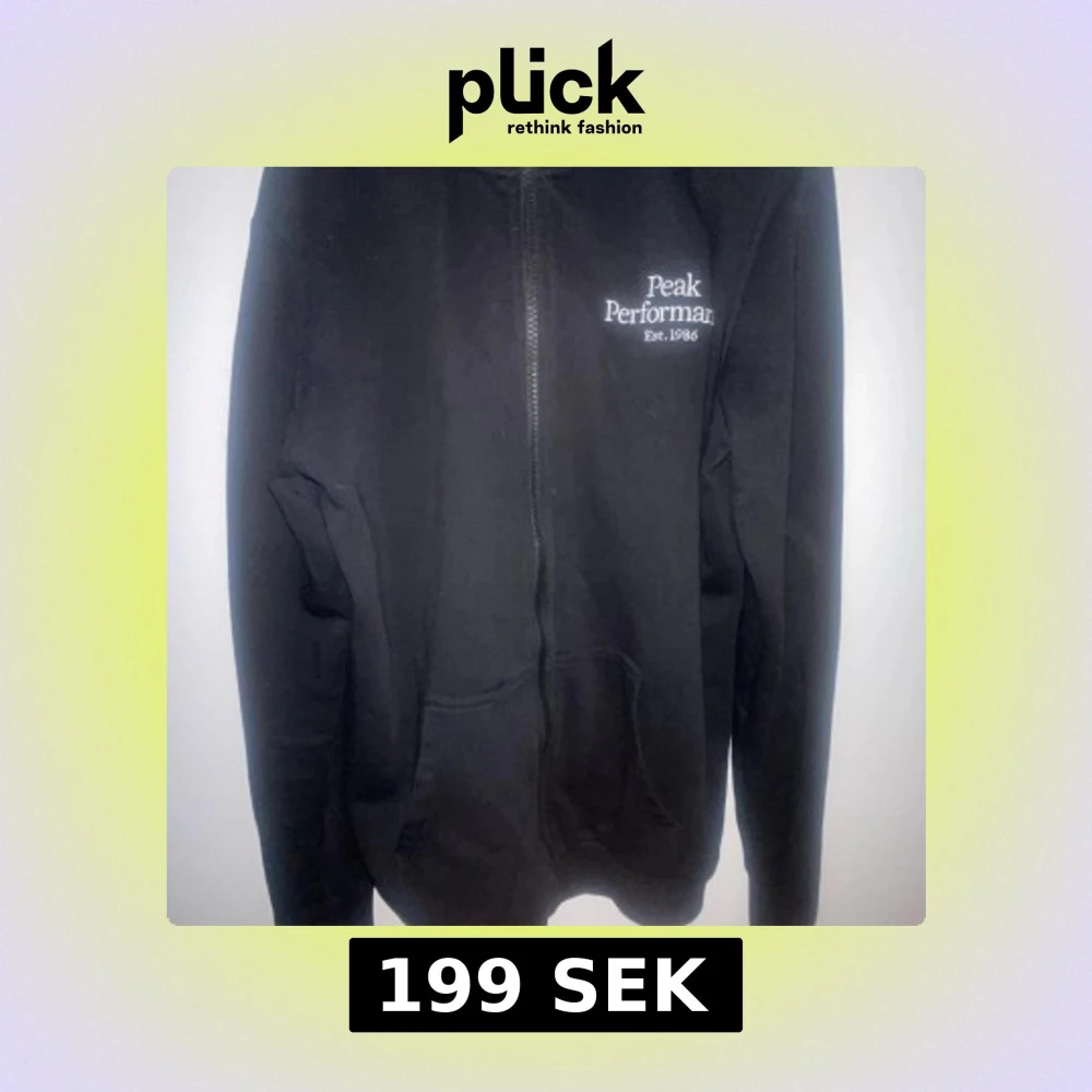Säljer en svart hoodie från Peak Performance med dragkedja och fickor framtill. Klassisk logga broderad på bröstet och huva. Perfekt för en avslappnad stil. Hör av er vid funderingar😁