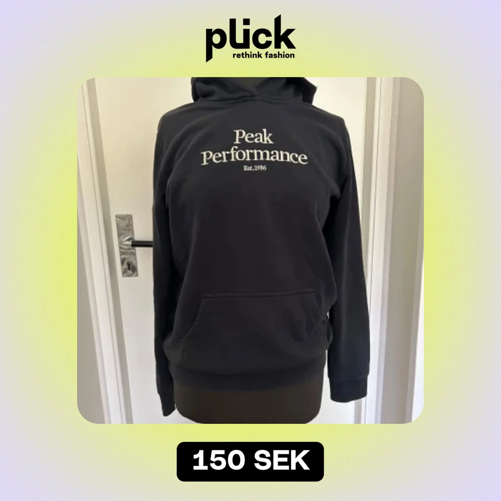 Säljer en snygg och bekväm svart hoodie från Peak Performance. Den har en klassisk design med vit text på bröstet. Perfekt för både vardag och chill.