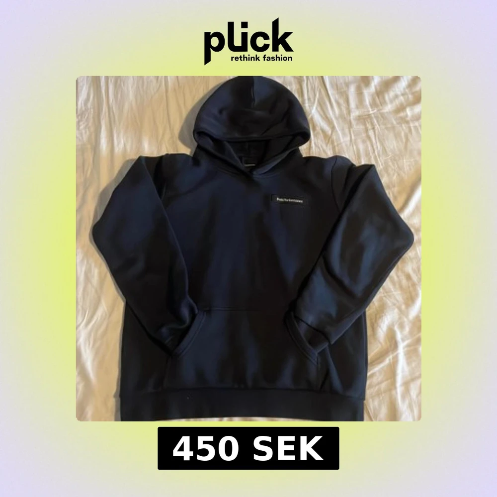 Säljer en svart hoodie från Peak Performance. Den har en klassisk design med en praktisk huva och en diskret logga på bröstet. Perfekt för en avslappnad look. Priset kan sänkas vid en snabb affär. Storlek 170 typ XS.