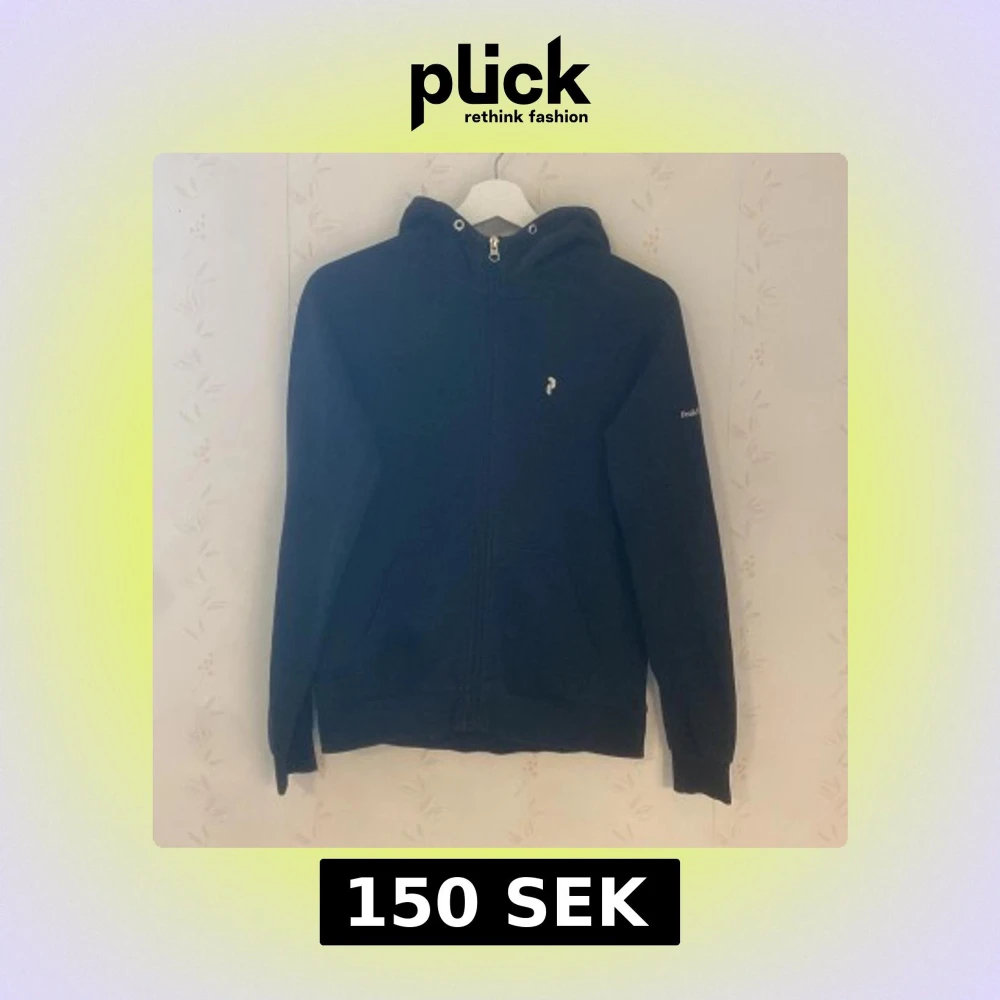 Svart hoodie från Peak Performance med dragkedja och huva. Klassisk logga på bröstet och ärmen. Mjuk insida och känguruficka framtill. Perfekt för chill eller när du vill ha en enkel, stilren look. Junior storlek M cirka 155-165 cm