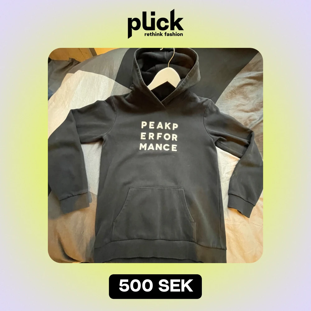 Säljer en svart hoodie från Peak Performance i mycket bra skick. Den har en klassisk design med vit text på bröstet och en stor ficka framtill. Perfekt för både vardag och träning. Superbekväm och stilren!