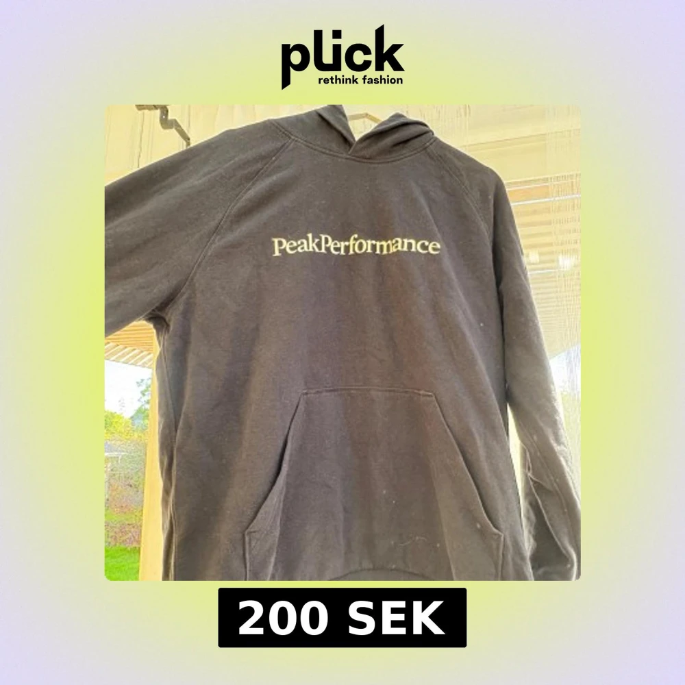 Svart hoodie från Peak Performance med vit logga på bröstet. Klassisk känguruficka framtill och huva. Perfekt för chill dagar eller när du vill ha en enkel och stilren look.