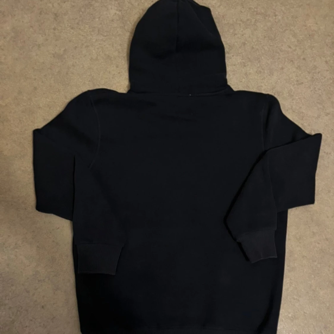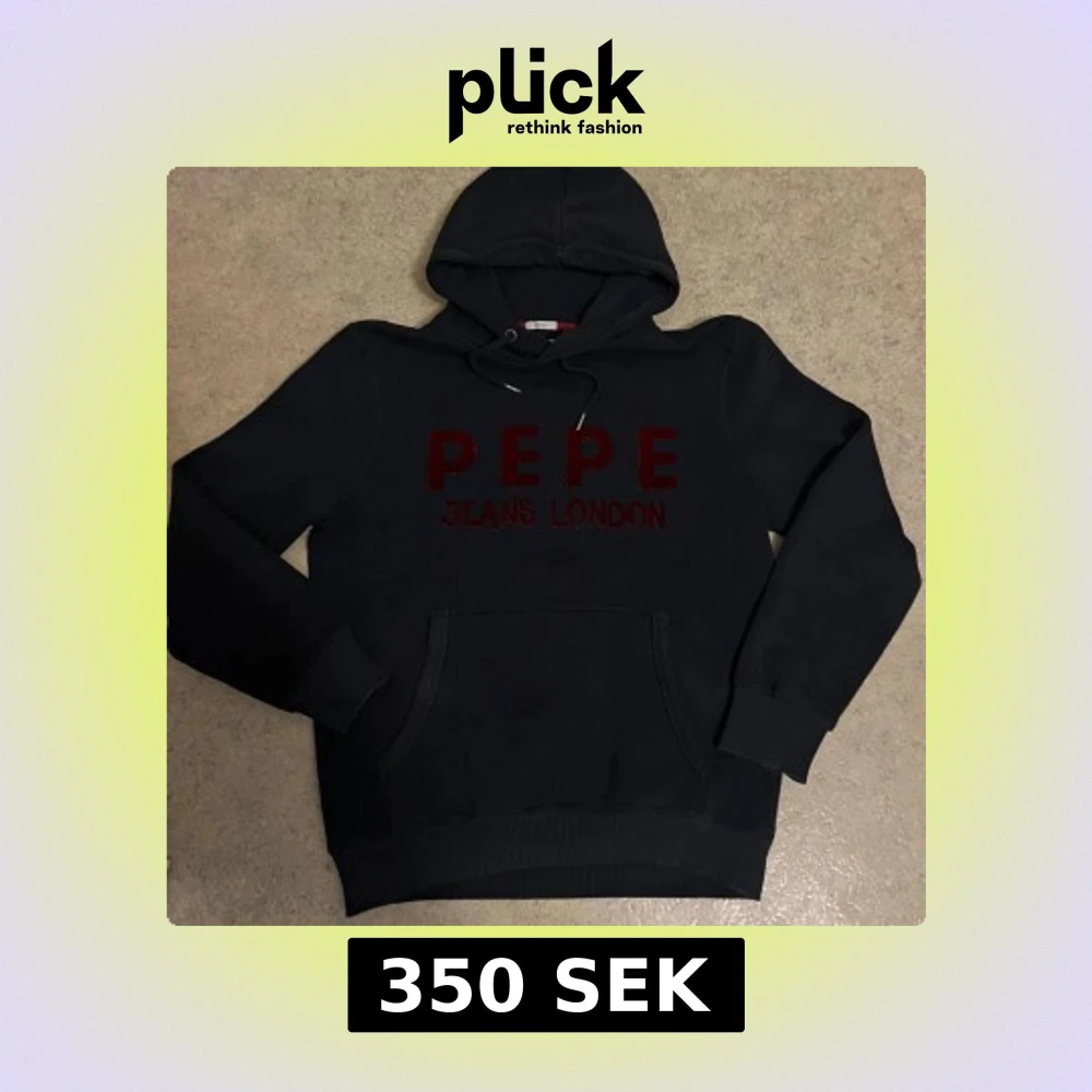 Svart hoodie från Pepe Jeans London med röd broderad logga på bröstet. Klassisk känguruficka framtill, huva med snörning och ribbade muddar. Regular fit och mjukt material som känns skönt mot huden. Perfekt för dig som gillar stilrena streetwear-plagg.