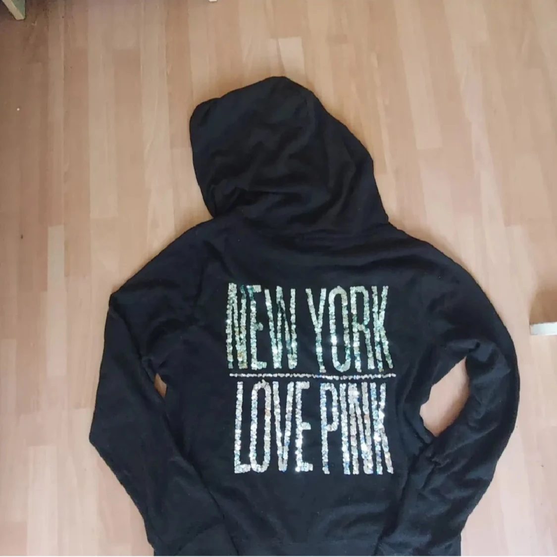 Storlek L från Victoria's Secret PINK💗 tyvärr ganska tunn & nopprig men riktigt snygg, skriv om ni vill ha bild på eller om ni har några frågor💕
