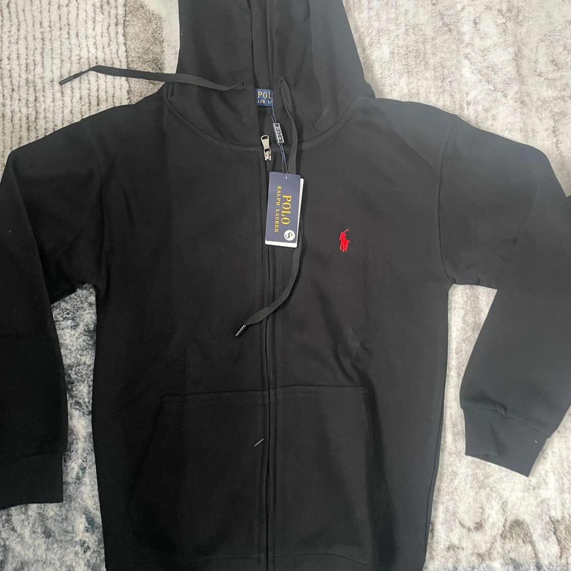 Svart hoodie från Polo Ralph Lauren med dragkedja, huva och snörning. Klassisk röd broderad logga på bröstet och känguruficka framtill. Tillverkad i mjuk bomull, perfekt för chill dagar eller när du vill ha en clean look.