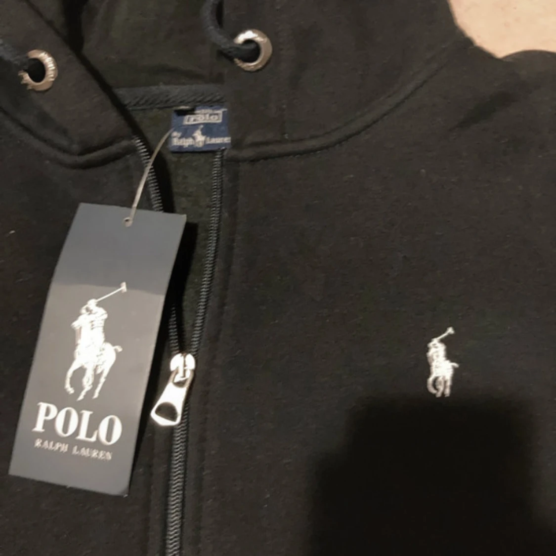 Mörkblå hoodie från Polo Ralph Lauren med dragkedja framtill och klassisk vit logga på bröstet. Tröjan har huva med snörning och två fickor framtill. Perfekt för en chill och stilren look.