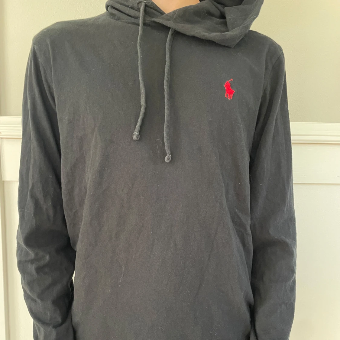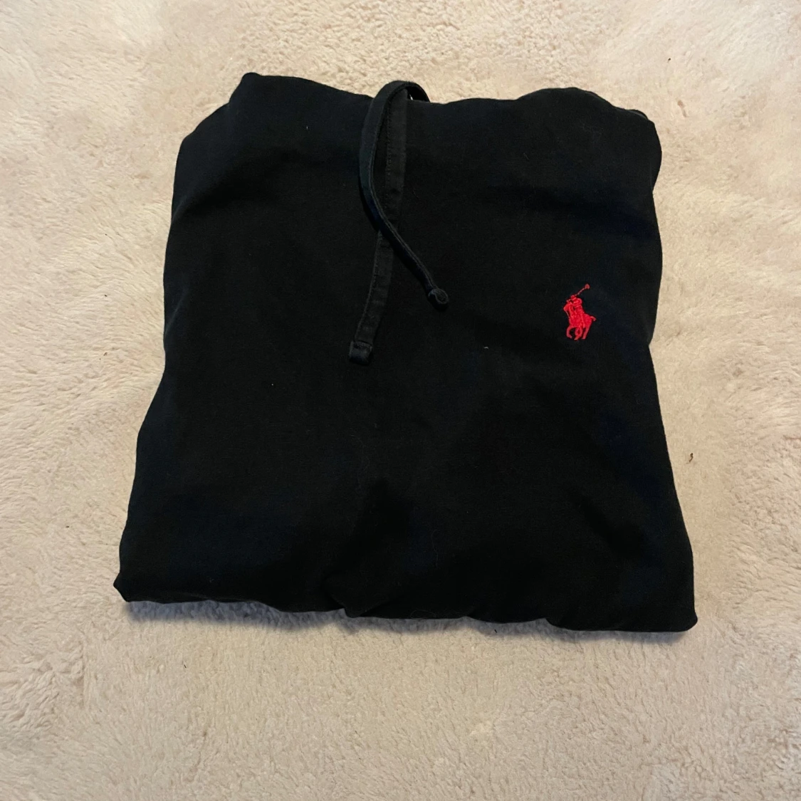 Svart hoodie från Polo Ralph Lauren med röd broderad logga på bröstet. Tröjan har långa ärmar, huva med dragsko och är tillverkad i mjukt material. Perfekt för en avslappnad stil. Passar xs/S
