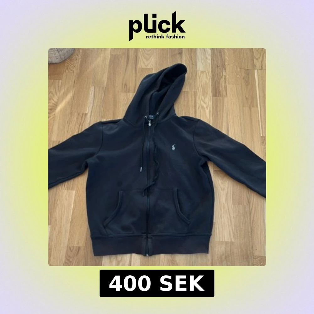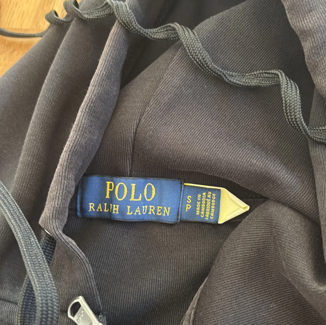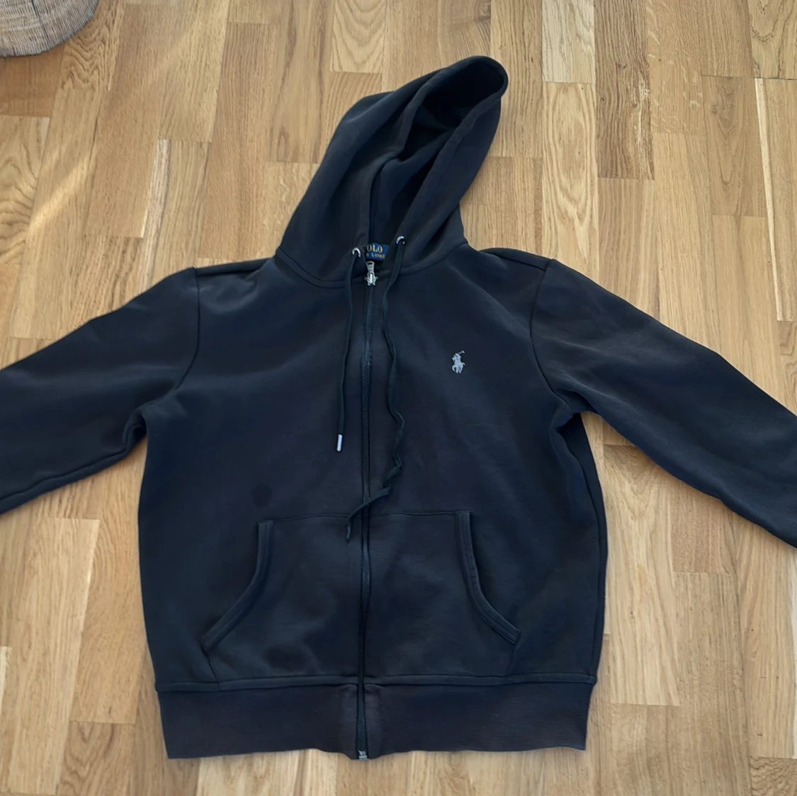 Svart hoodie från Polo Ralph Lauren med klassisk logga på bröstet. Tröjan har huva med snörning, dragkedja framtill och två stora fickor. Materialet är mjuk bomull och passformen är normal. Storlek S passar xs