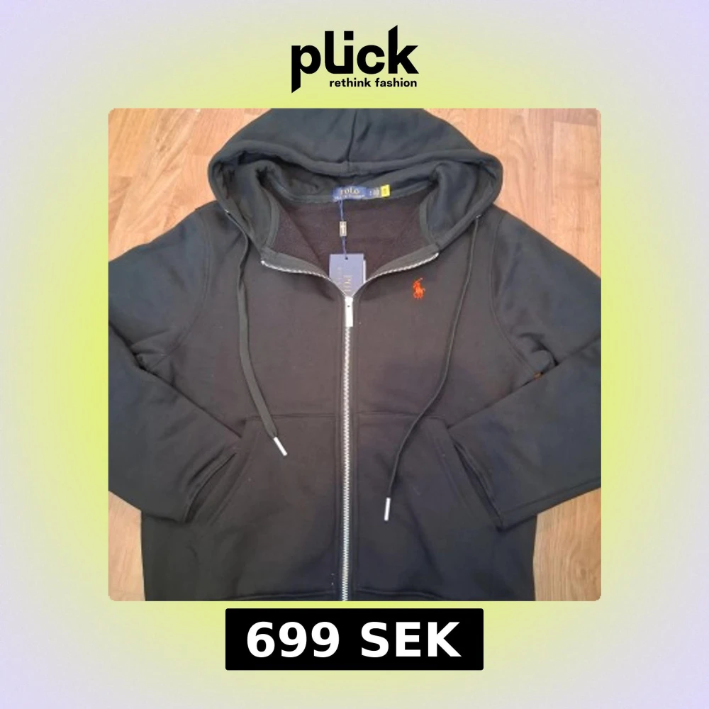 Svart hoodie från Polo Ralph Lauren med dragkedja och huva. Tröjan har ett rött broderat logomärke på bröstet, snörning i huvan och mjukt fleecefoder på insidan. Perfekt för dig som gillar klassisk streetstyle och vill ha något riktigt bekvämt.