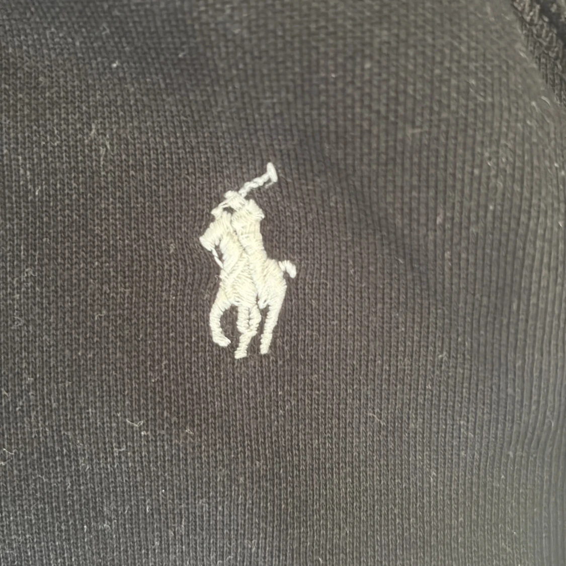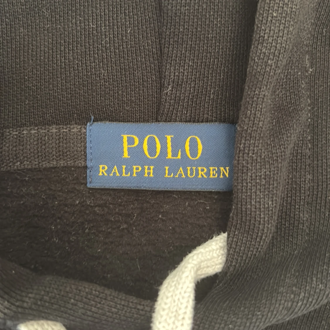 Svart hoodie från Polo Ralph Lauren med vit broderad logga på bröstet och vita snören vid huvan. Tröjan har lång ärm, ribbade muddar och är gjord i mjuk bomull. Perfekt för chill dagar och enkel att matcha med jeans eller joggers. Säljer då den är för liten för mig.