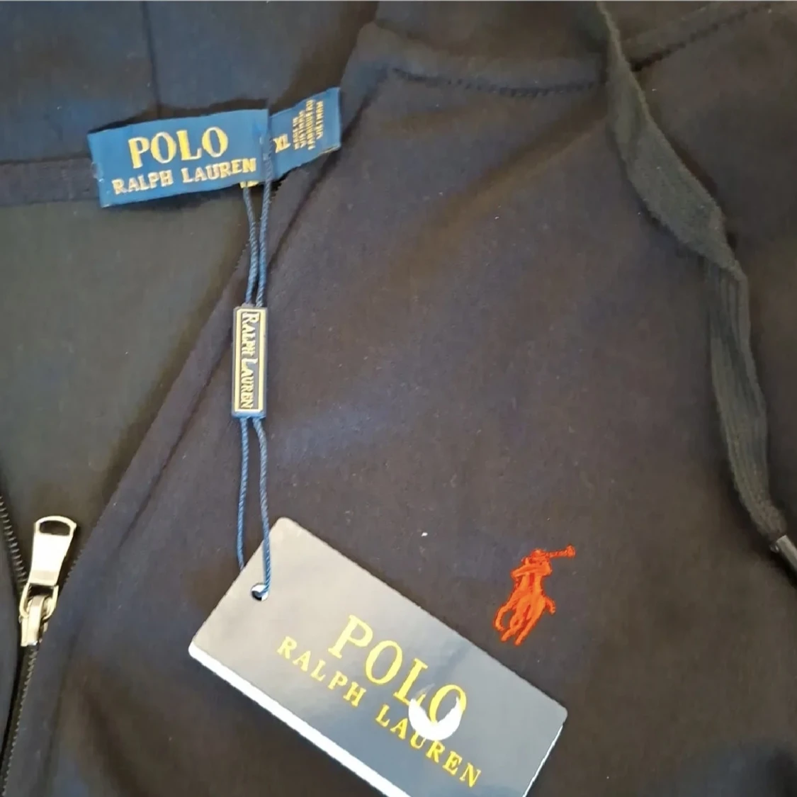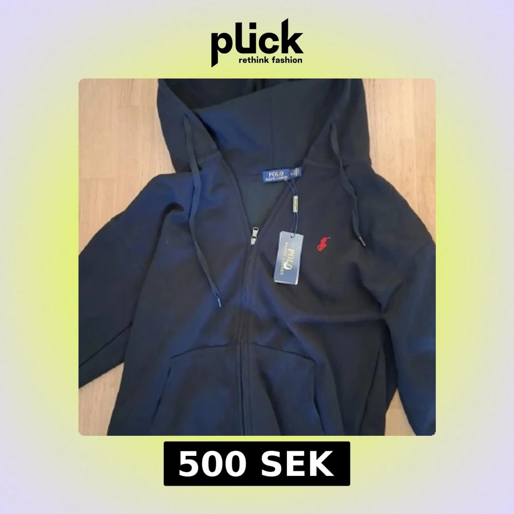 Svart hoodie från Polo Ralph Lauren i storlek XL med dragkedja, huva och snörning. Klassisk röd broderad logga på bröstet och känguruficka framtill. Tillverkad i mjuk bomull, perfekt för chill dagar. Snygg och enkel att matcha med allt.
