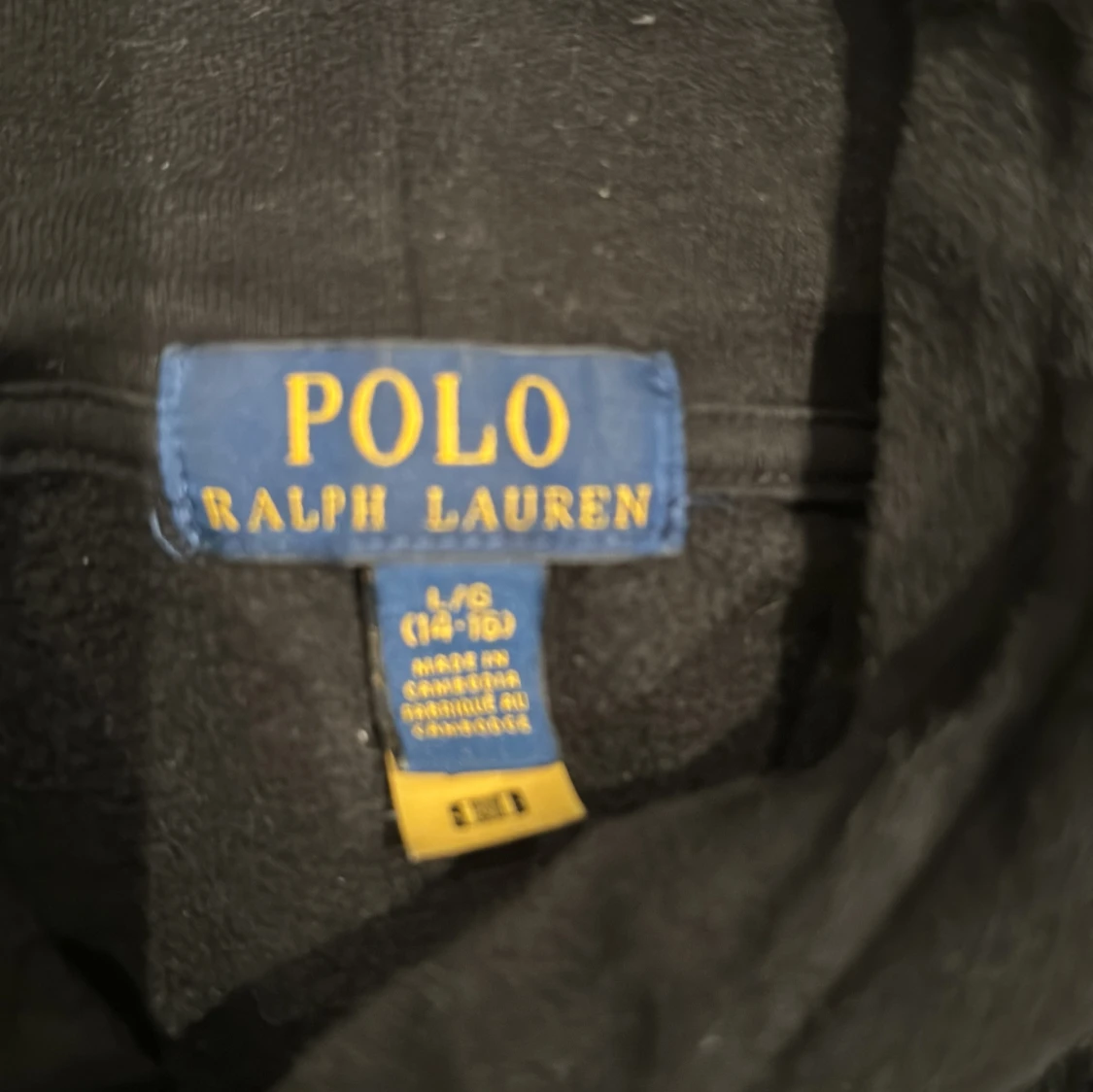 Säljer en svart hoodie från Ralph Lauren med ett coolt björntryck på framsidan. Hoodien har en klassisk design med huva och är perfekt för en avslappnad stil. Den är gjord i mjukt material för extra komfort. Det är 14-16år i barn storlek men Ralph lauren har stora storlekar jag är 168cm och den är tight på mig. Skriv och hör av er om ni har funderingar🙌