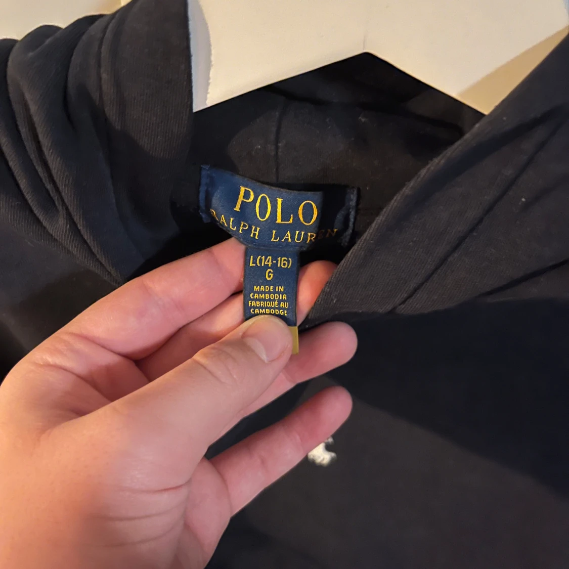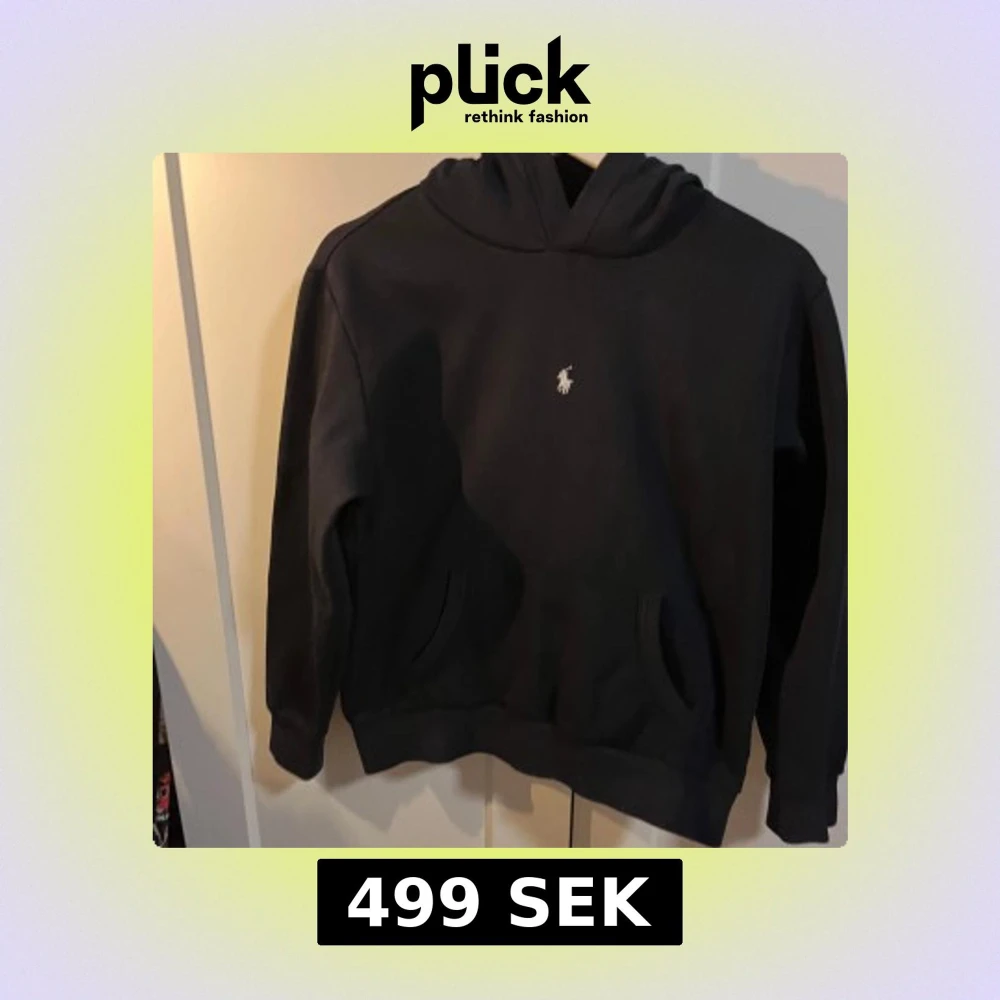 Säljer en stilren svart hoodie från Ralph Lauren med det klassiska logotypbroderiet på bröstet. Tröjan har en bekväm passform och är perfekt för en avslappnad look. Den har långa ärmar och en praktisk huva. Köpte hoodie inför 1200 ungefär så säljer den för ett jättebra pris.