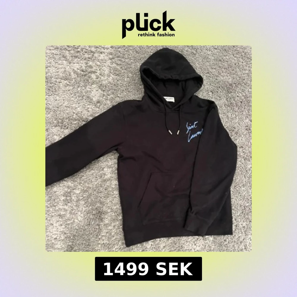 Svart hoodie från Saint Laurent med vit broderad logga på bröstet. Tröjan har huva med snörning och en stor magficka. Tillverkad i mjuk bomull och har långa ärmar. Perfekt för dig som gillar stilrena designer och exklusiva märken.