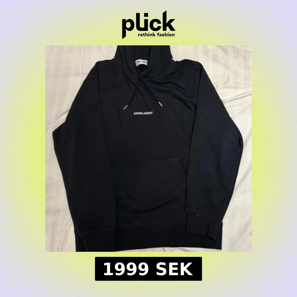 Snygg svart hoodie från Saint Laurent med en klassisk design. Den har en justerbar huva med dragsko och en praktisk magficka. Modellen är 177-178 cm Lång. Dma🤙