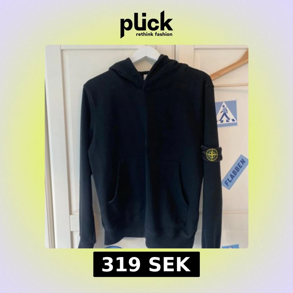 Svart hoodie från Stone Island med klassisk patch på vänster ärm. Tröjan har huva, känguruficka och långa ärmar. Använt den fåtal gånger och har inga stora skavanker eller hål eller fläck. Vid frågor eller nåt är de bara att höra av er! Tröjan sitter som en S