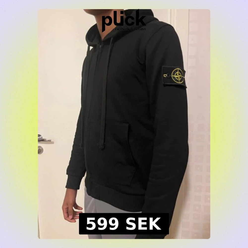 Svart hoodie från Stone Island med klassisk patch på vänster ärm. Tröjan har huva med snörning, magficka och ribbade muddar. Perfekt för dig som gillar streetwear och vill ha en clean look med snygga detaljer.