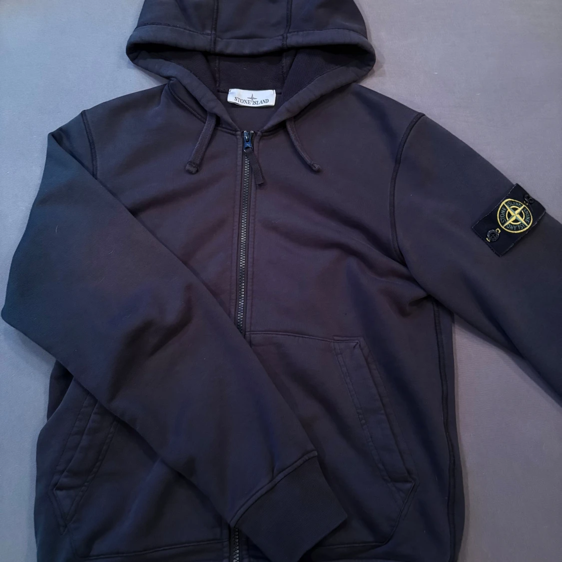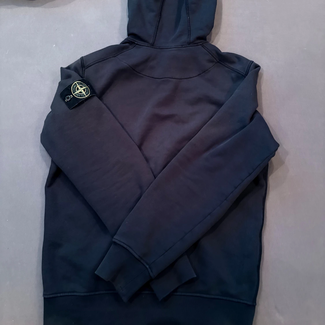 Svart hoodie från Stone Island med dragkedja framtill och klassisk patch på vänster ärm. Tröjan har luva med snörning och två fickor fram. perfekt för en chill och stilren look. TVEKA INTE på att höra av dig ifall du känner minsta lilla intresset (Säljer då jag inte använder den, väldigt bra skick, Passar S/M) PRIS ÄR INTE HUGGET I STEN!
