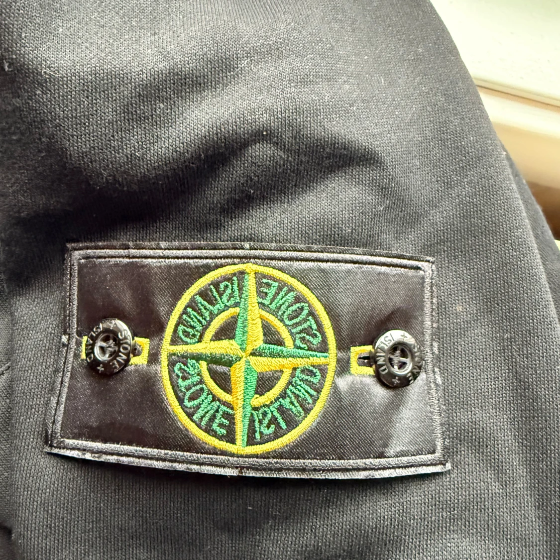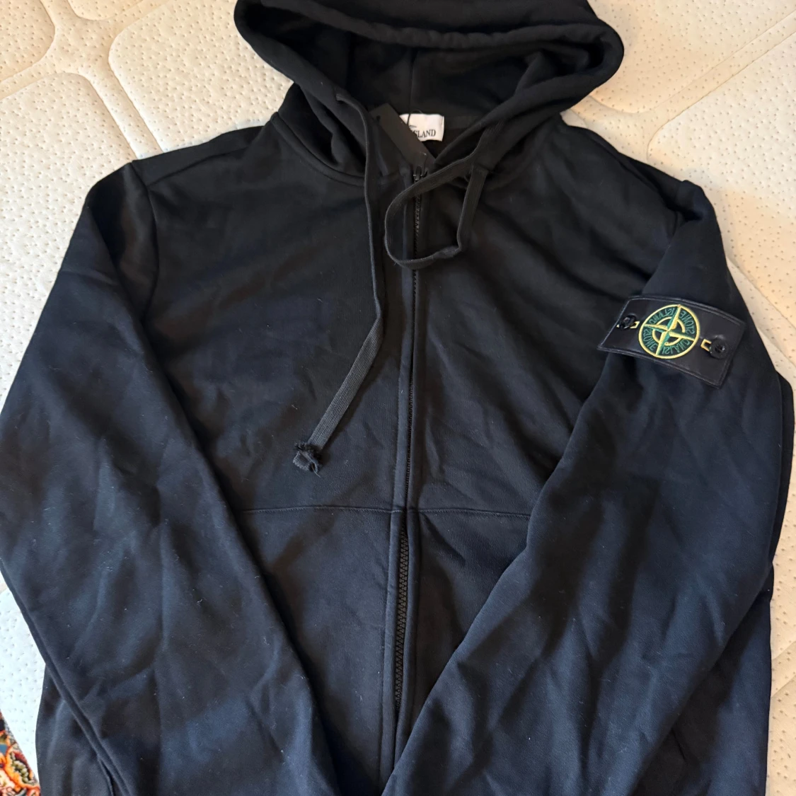 Svart hoodie från Stone Island med ikonisk patch på vänster ärm. Tröjan har huva med snörning, dragkedja framtill och är tillverkad i mjuk bomull. Perfekt för dig som vill ha en clean och stilren look med street-vibe.