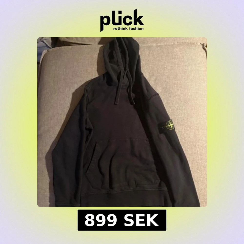 Svart hoodie från Stone Island med klassisk logotyp-patch på vänster ärm. Tröjan har huva med snörning och en stor magficka framtill. Mjuk bomullskvalitet och normal passform, perfekt för chill dagar. Snygg och enkel design som alltid funkar.