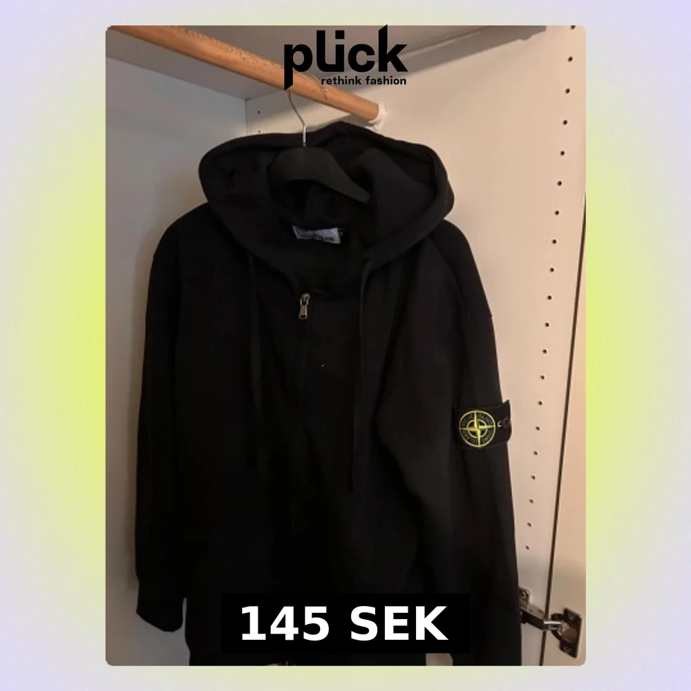 Svart hoodie från Stone Island med klassisk logotyp-patch på vänster ärm. Tröjan har huva med snörning, dragkedja framtill och långa ärmar. Perfekt för dig som gillar streetwear och vill ha en stilren look.