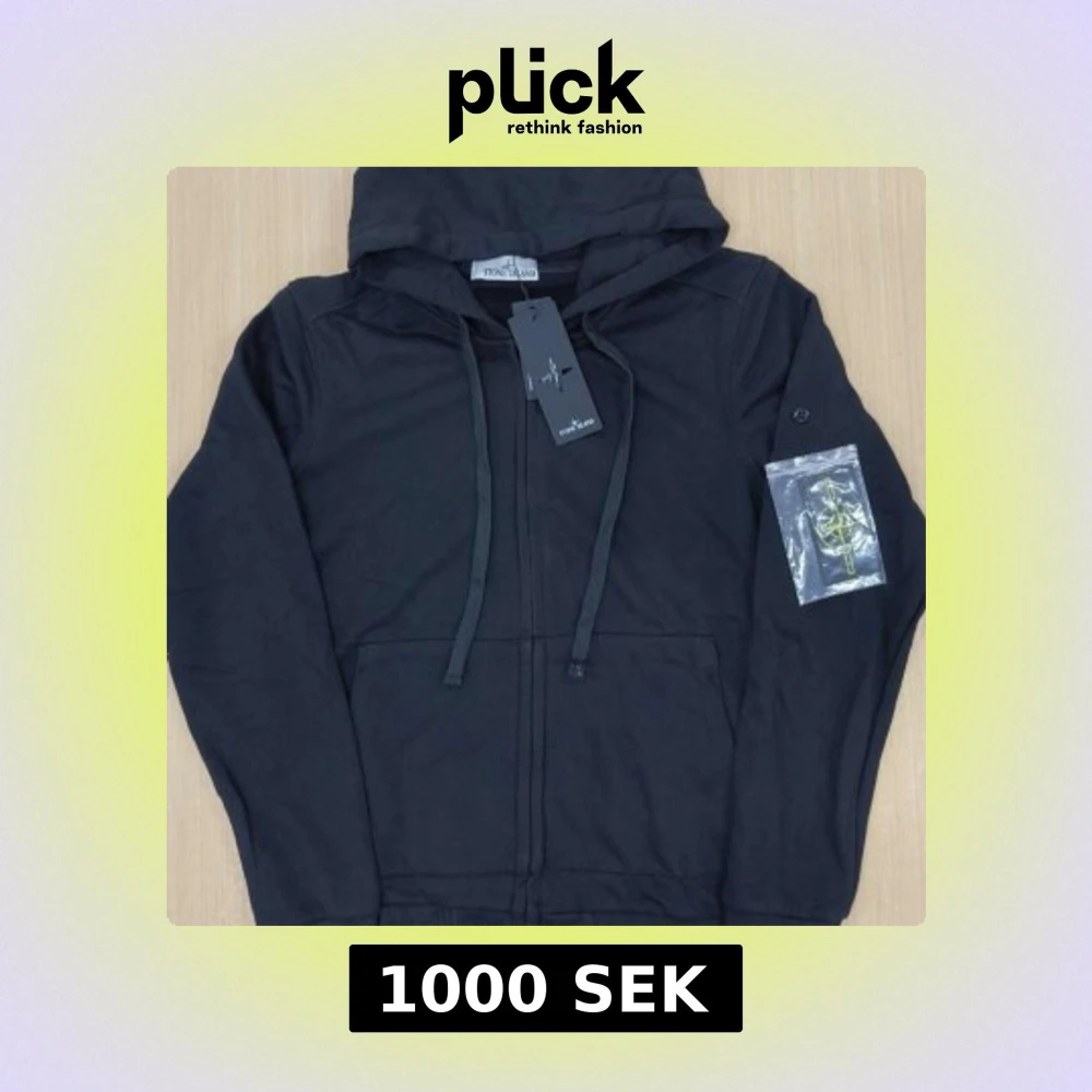 Svart hoodie från Stone Island med dragkedja framtill, huva med snörning och klassisk logotyp-patch som kan fästas på ärmen. Tröjan har kängurufickor och är tillverkad i mjuk bomull. Perfekt för en avslappnad och stilren look.