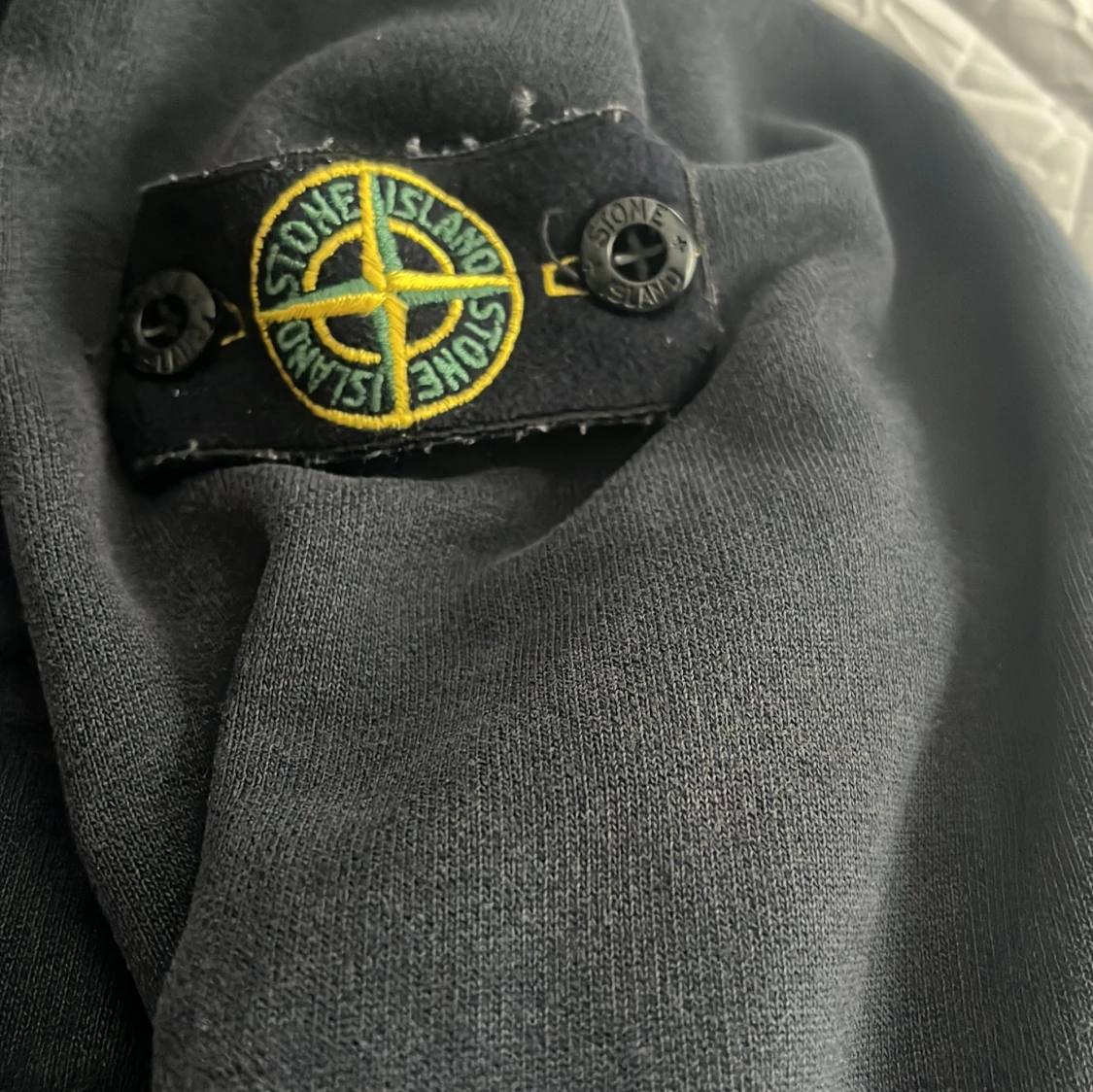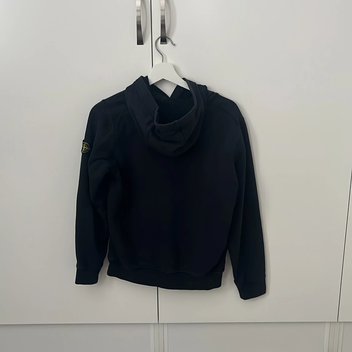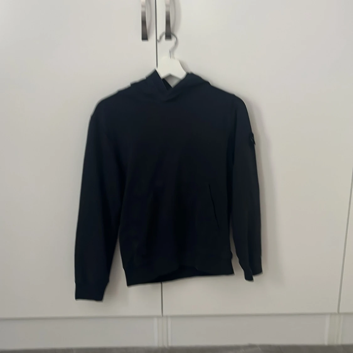 Svart hoodie från Stone Island Junior med klassisk logga på ärmen. Tröjan har huva, långa ärmar och en enkel, clean design. Perfekt för dig som gillar streetwear och vill ha något stilrent men ändå med tydlig attityd.