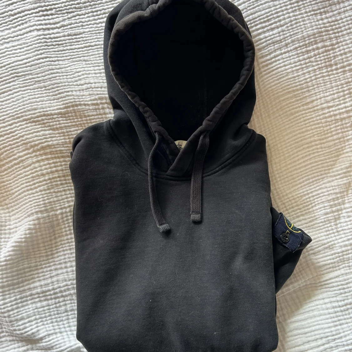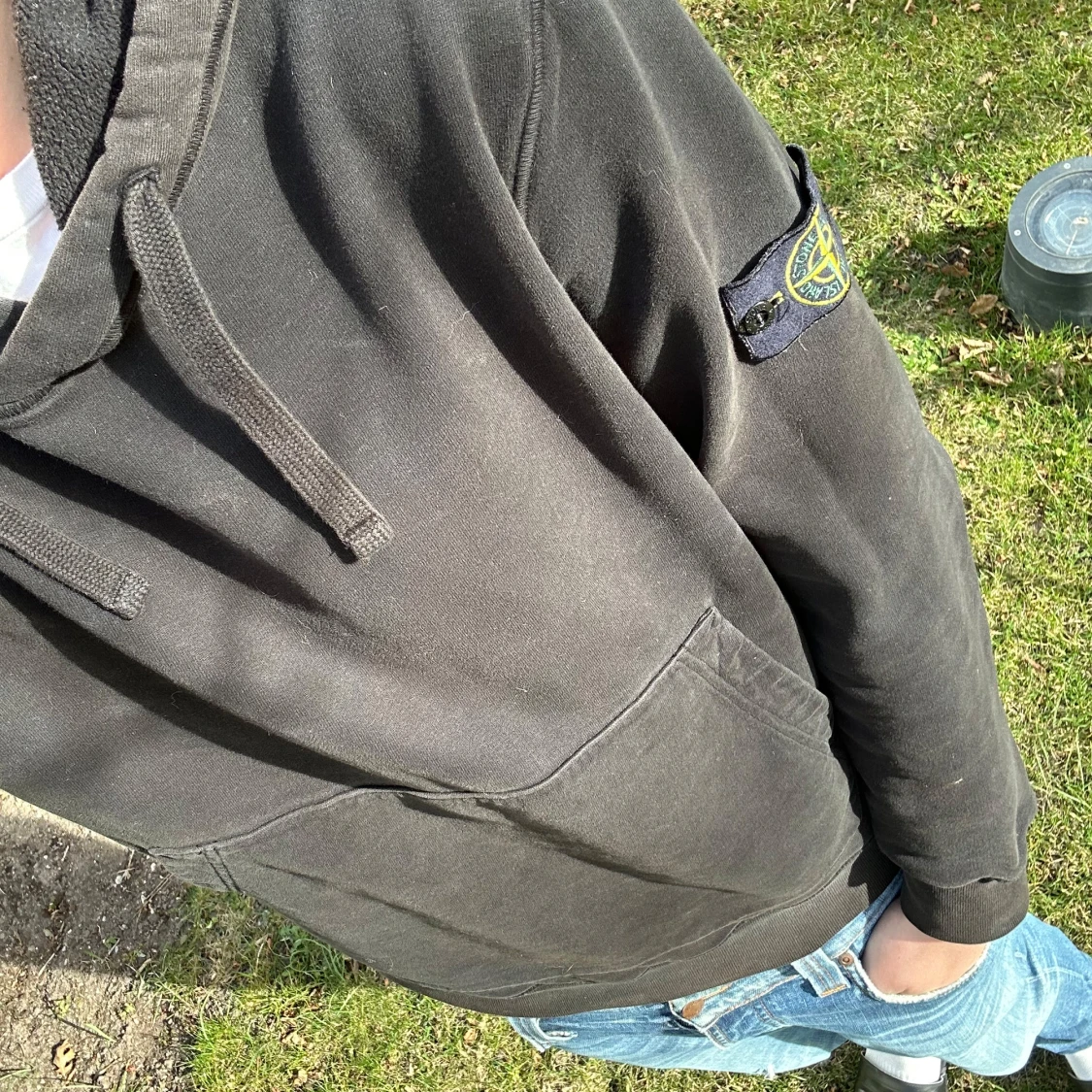 Säljer en stilren svart hoodie från Stone Island. Hoodin är lite sol bränd men det gör den snyggare. Den har inga skador. Den är äkta! Storlek M. Nypris är tunt 3000