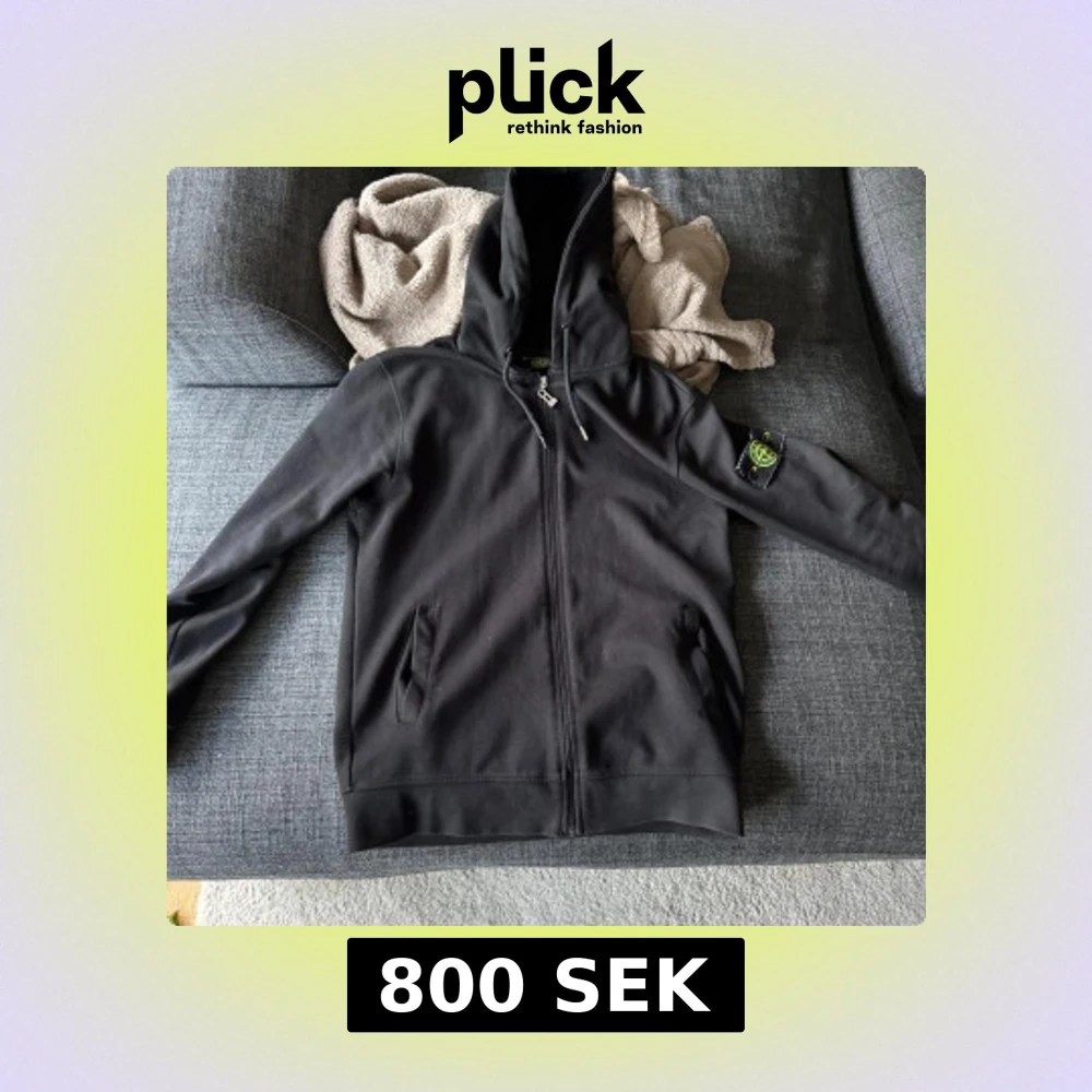 Svart hoodie från Stone Island med klassisk logga på ärmen. Tröjan har dragkedja framtill, snörning i huvan och två fickor. Tillverkad i mjuk bomull, perfekt för en chill och stilren look.