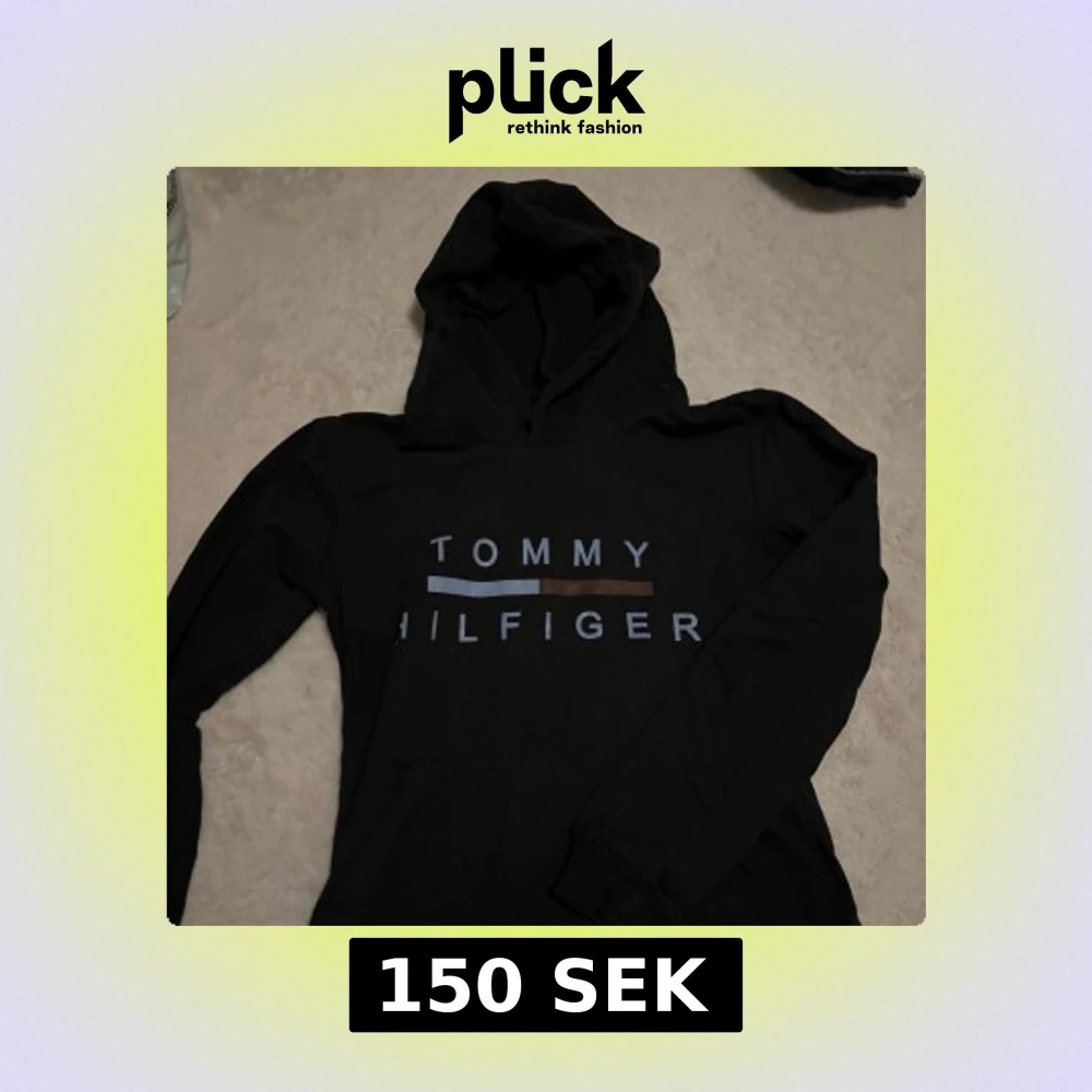 Snygg svart hoodie från Tommy Hilfiger med märkets logga i blått och brunt på bröstet. Perfekt för en avslappnad stil.