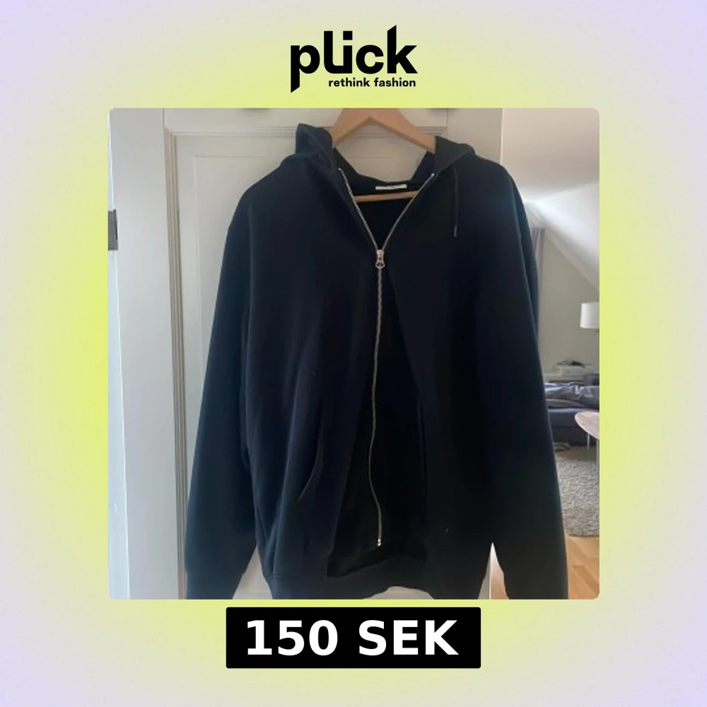 Svart hoodie från Weekday med hel dragkedja framtill och huva med snörning. Den är väldigt skön och är i storlek M! Pris kan diskuteras vid snabb affär!