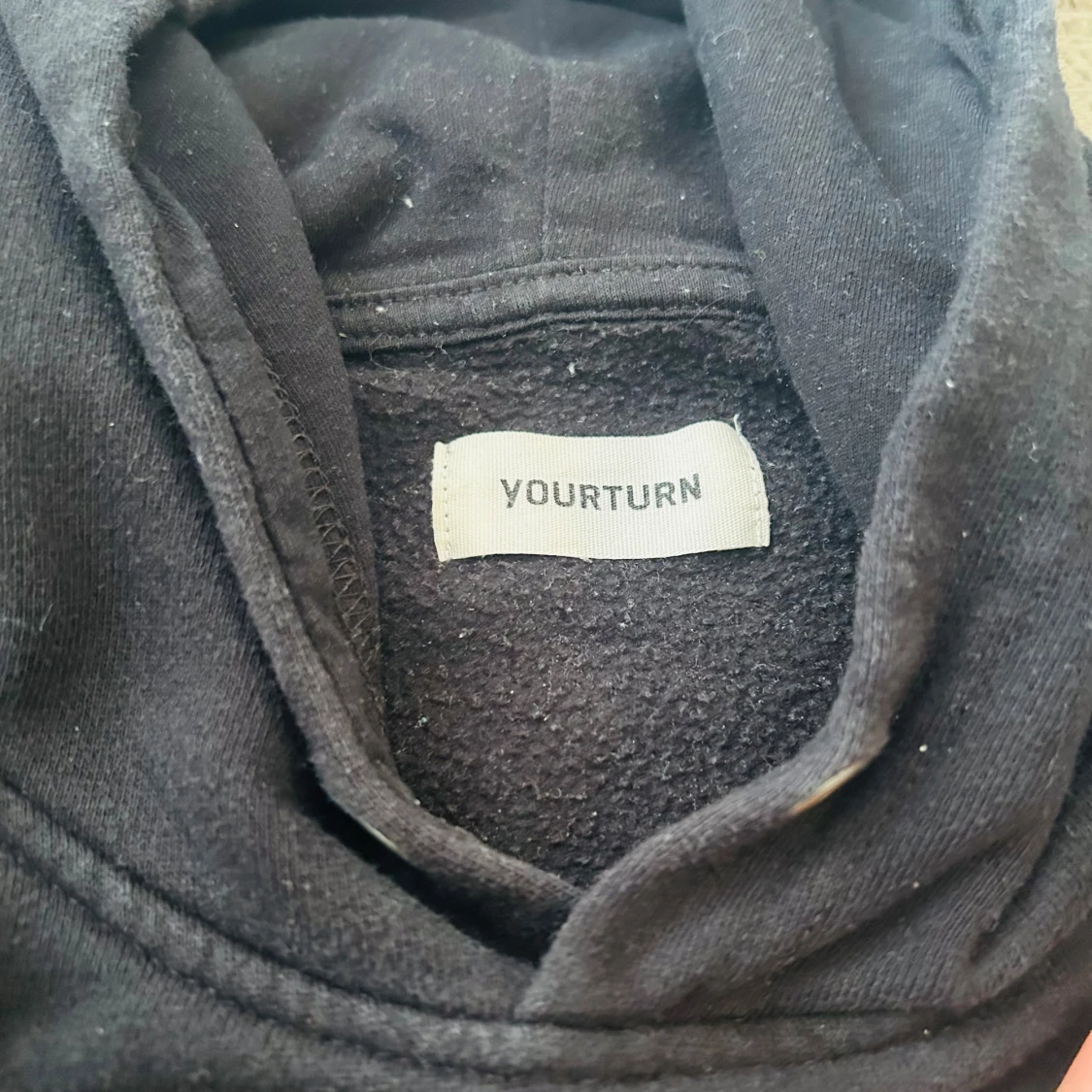 Svart hoodie från YOURTURN i storlek L. Klassisk modell med huva och stor magficka framtill. Mjuk insida och skön passform, perfekt för chill eller häng. Materialet är bomull och polyester, vilket gör den både bekväm och slitstark. Snyggt diskret logotypmärke på sidan.