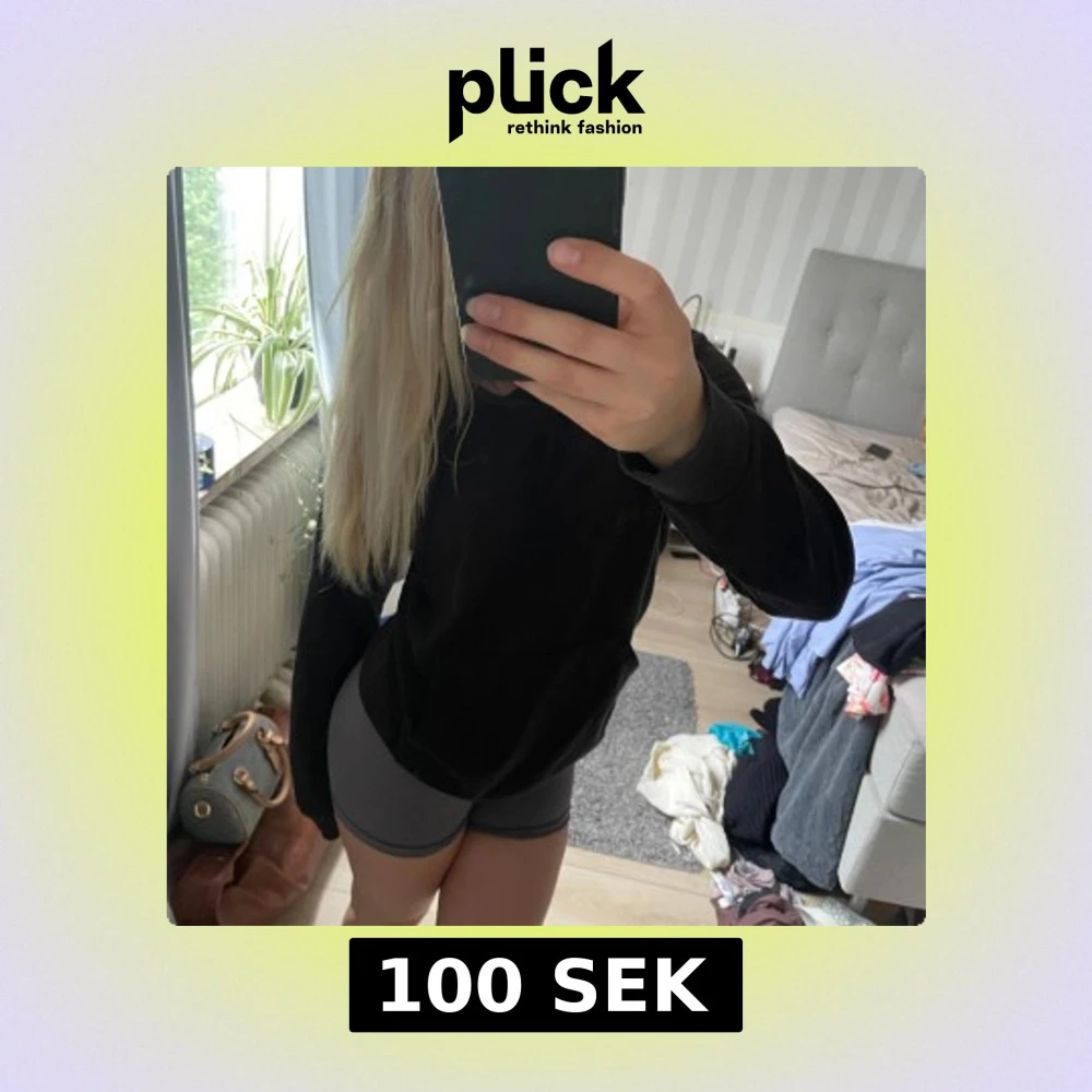 En svart hoodie med huva och långa ärmar. Tröjan har en klassisk passform och är tillverkad i ett mjukt, bekvämt material som passar perfekt för chill dagar eller när du vill ha en enkel och stilren look. Kommer från stadium och är i storlek XS.