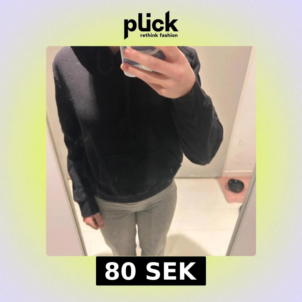 Säljer en klassisk svart hoodie med luva och ficka framtill.