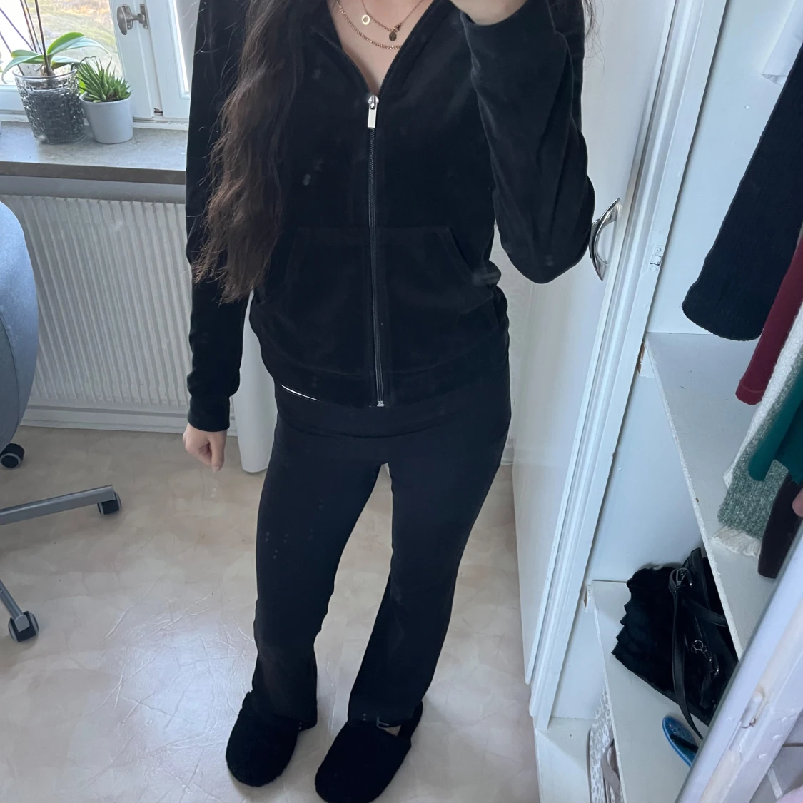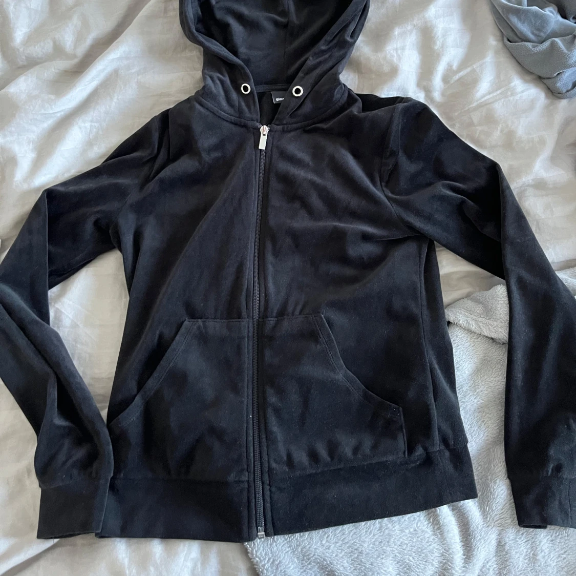 Säljer en supermjuk och bekväm svart hoodie med dragkedja. Perfekt för mysiga dagar eller en avslappnad stil. Den har en praktisk ficka framtill och en skön huva. Passar till det mesta och är ett måste i garderoben!