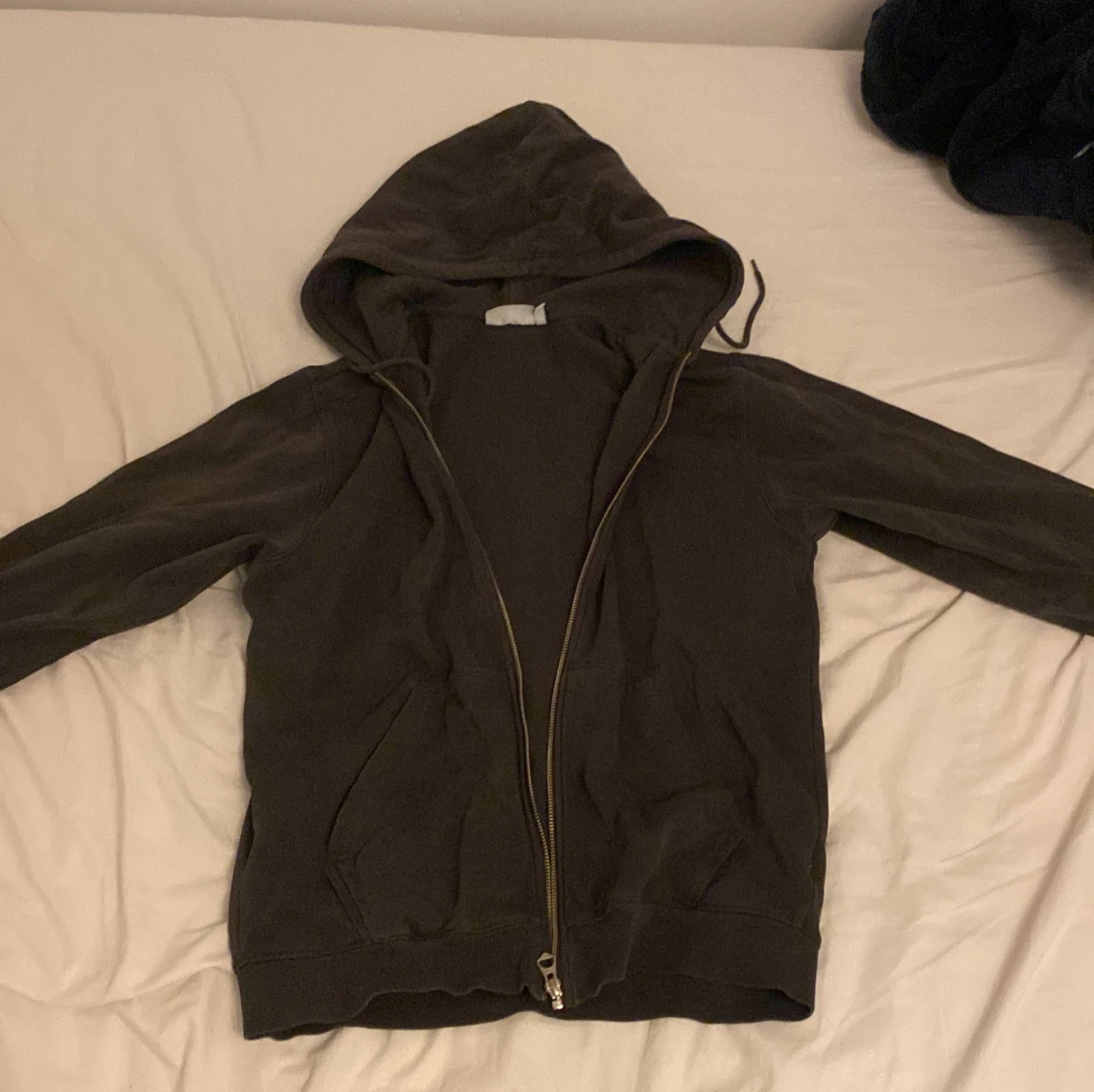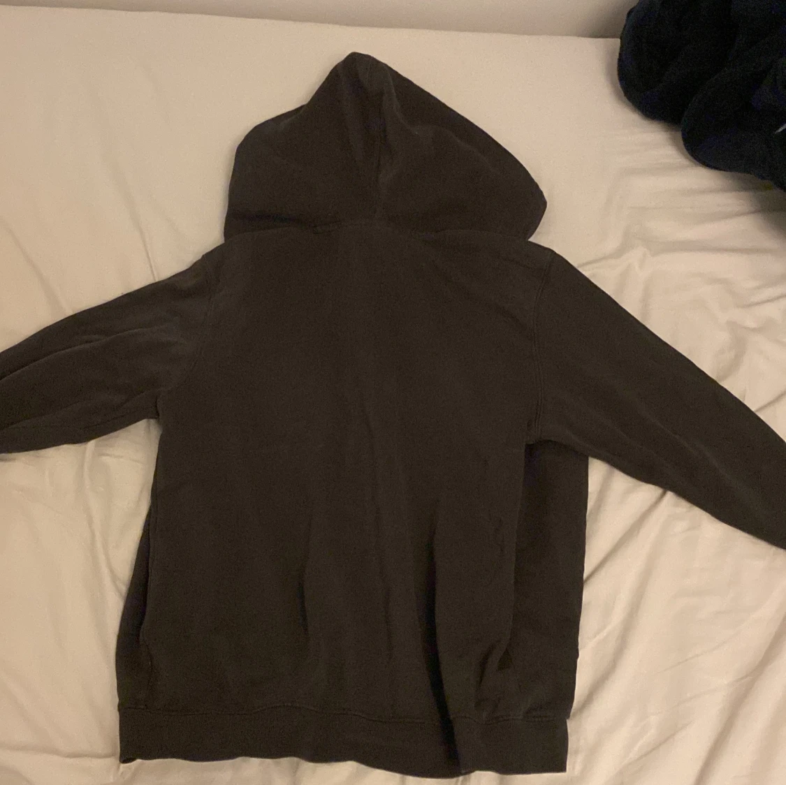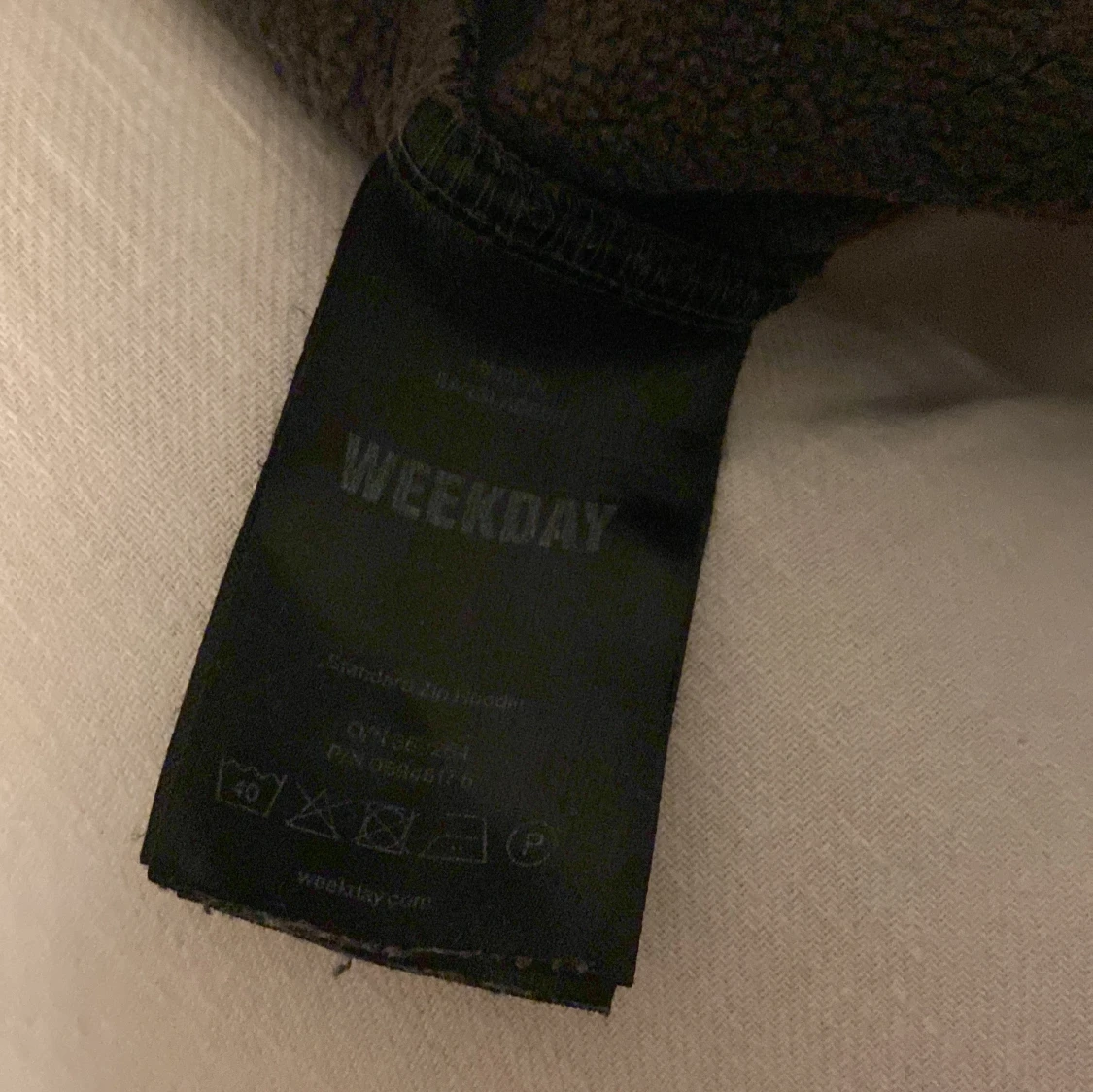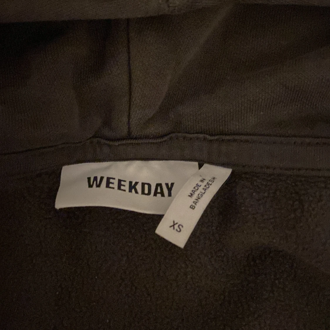 En svart hoodie från Weekday i storlek XS. Tröjan har huva, dragkedja framtill och två fickor. Tillverkad i mjuk bomullsmix, perfekt för chill dagar eller när du vill ha en enkel och clean look. Långärmad och klassisk passform.
