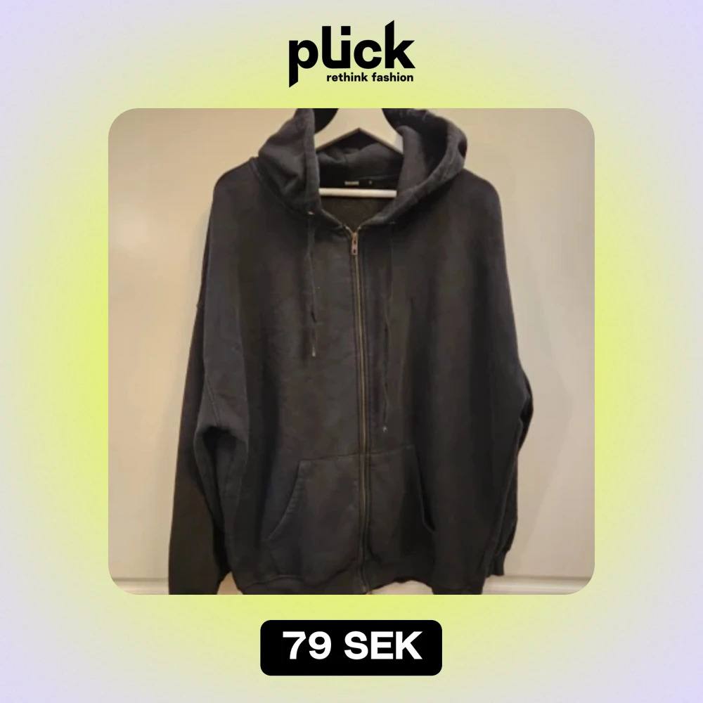 Säljer en använd svart hoodie med dragkedja. Den är perfekt för kyliga dagar och har en skön, avslappnad passform. Hoodien har en stor huva och praktiska fickor framtill. Perfekt för både vardag och mysiga hemmakvällar. Mer som strl L