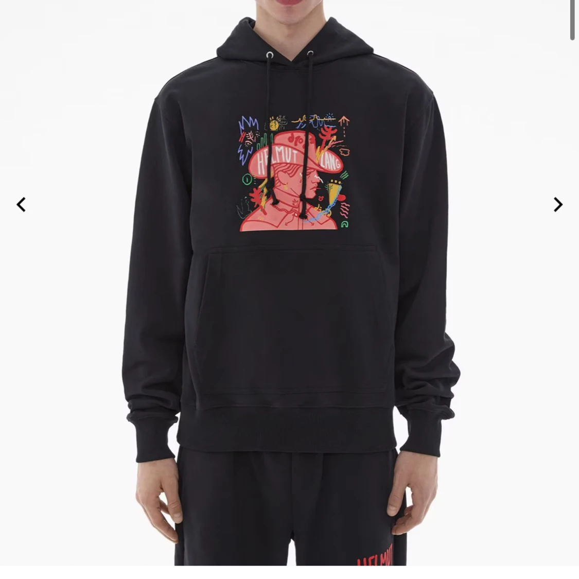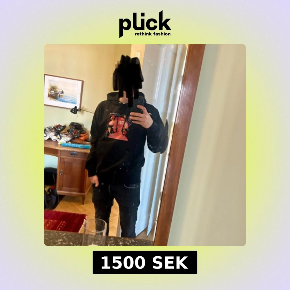 Snygg svart hoodie med ett färgglatt och kreativt tryck på framsidan. Perfekt för en avslappnad stil med en touch av konstnärlig flair. Hoodien har en klassisk passform med långa ärmar och en praktisk magficka.