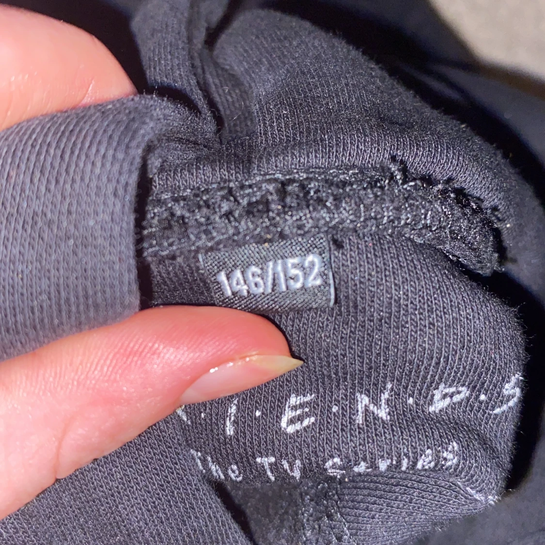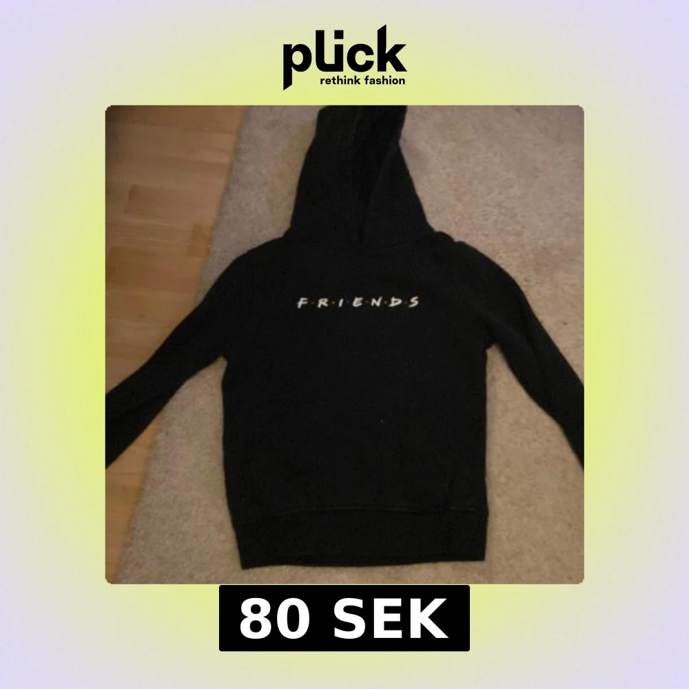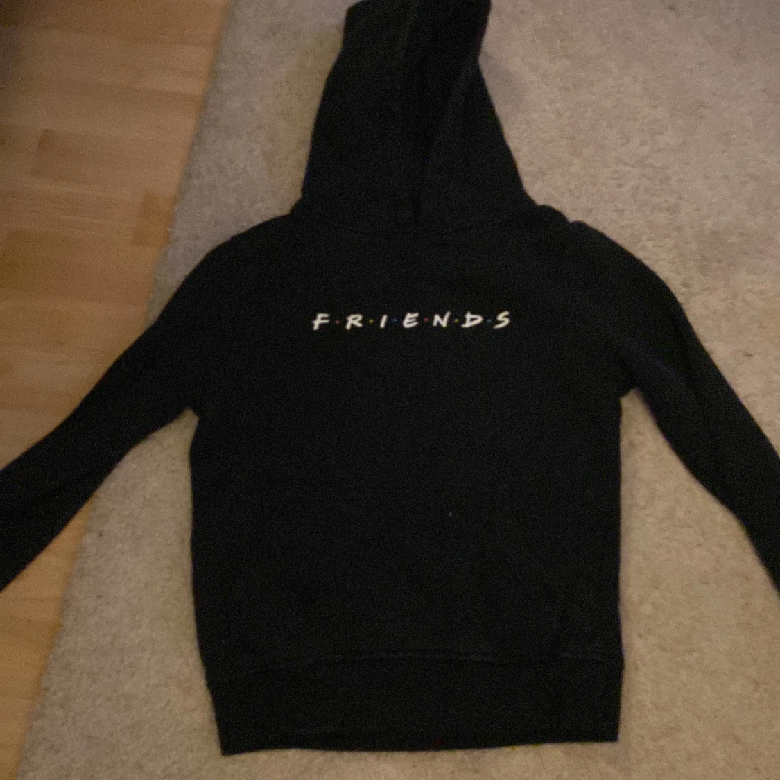 Säljer en svart hoodie med luva med Friends-trycket på bröstet. Den är i strl 146/152.